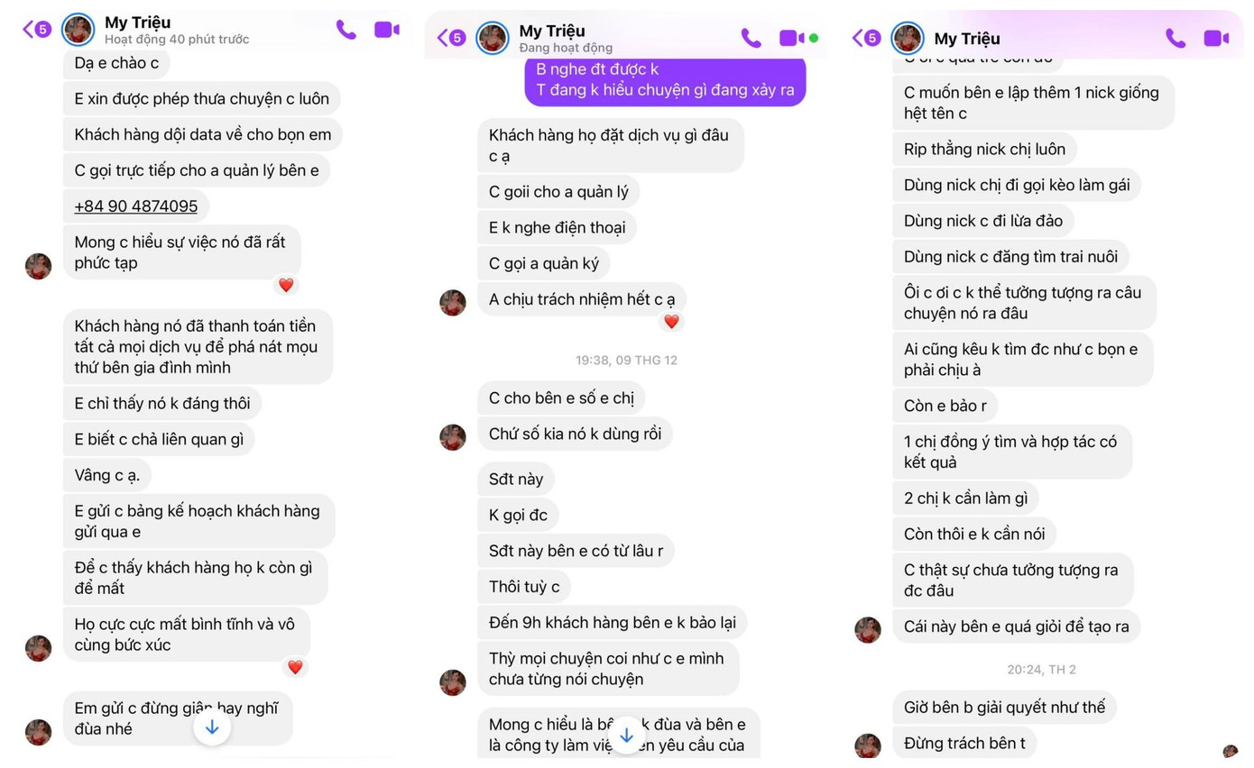 Cụ thể, cô nhận được tin nhắn của đối tượng không quen biết với nội dung: "Khách hàng bên em đã thanh toán tiền tất cả mọi dịch vụ để phá nát mọi thứ bên gia đình mình. Em gửi chị bảng kế hoạch khách hàng gửi qua em, để chị thấy họ không còn gì để mất. Họ cực mất bình tĩnh và vô cùng bức xúc".