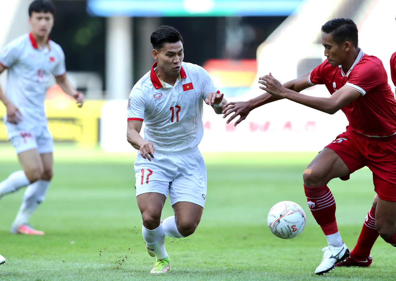 26': Pha thi đấu thiếu chắc chắn của hàng thủ Indonesia tạo điều kiện cho Tiến Linh có bóng trong vòng cấm. Tiền đạo số 22 sau đó đã té ngã nhưng trọng tài không cho Việt Nam quả phạt đền.