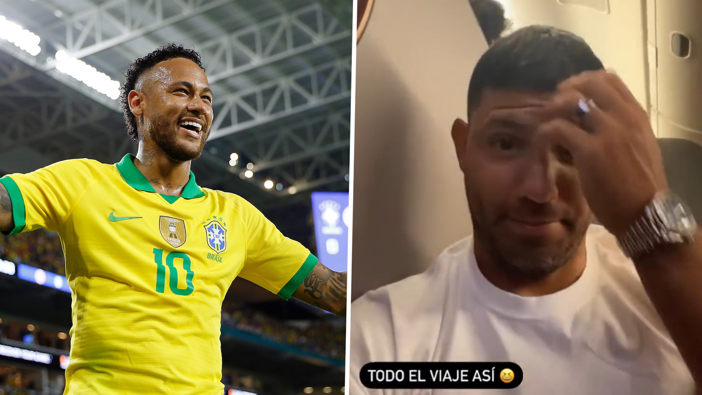 Trên trang cá nhân, cựu tiền đạo Sergio Aguero người Argentina đăng tải video ngồi trên máy bay đến Qatar. Trong đoạn phim ngắn, Aguero liên tục vò đầu bứt tai vì tiếng ồn từ nhóm cổ động viên Brazil.