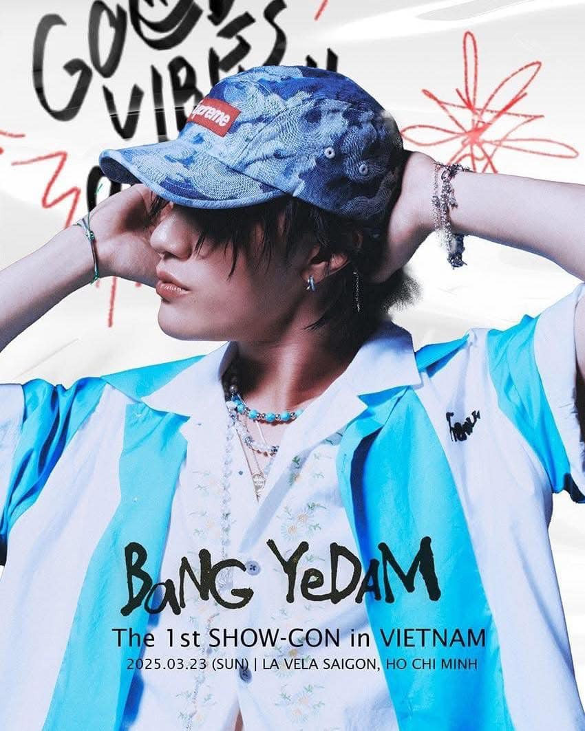 Cũng tại địa điểm La Vela Saigon (TP.HCM), vào ngày 23/3 cũng sẽ diễn ra sự kiện “#GOODViBESONLY” là show-con đầu tiên của Bang Yedam tại Việt Nam.