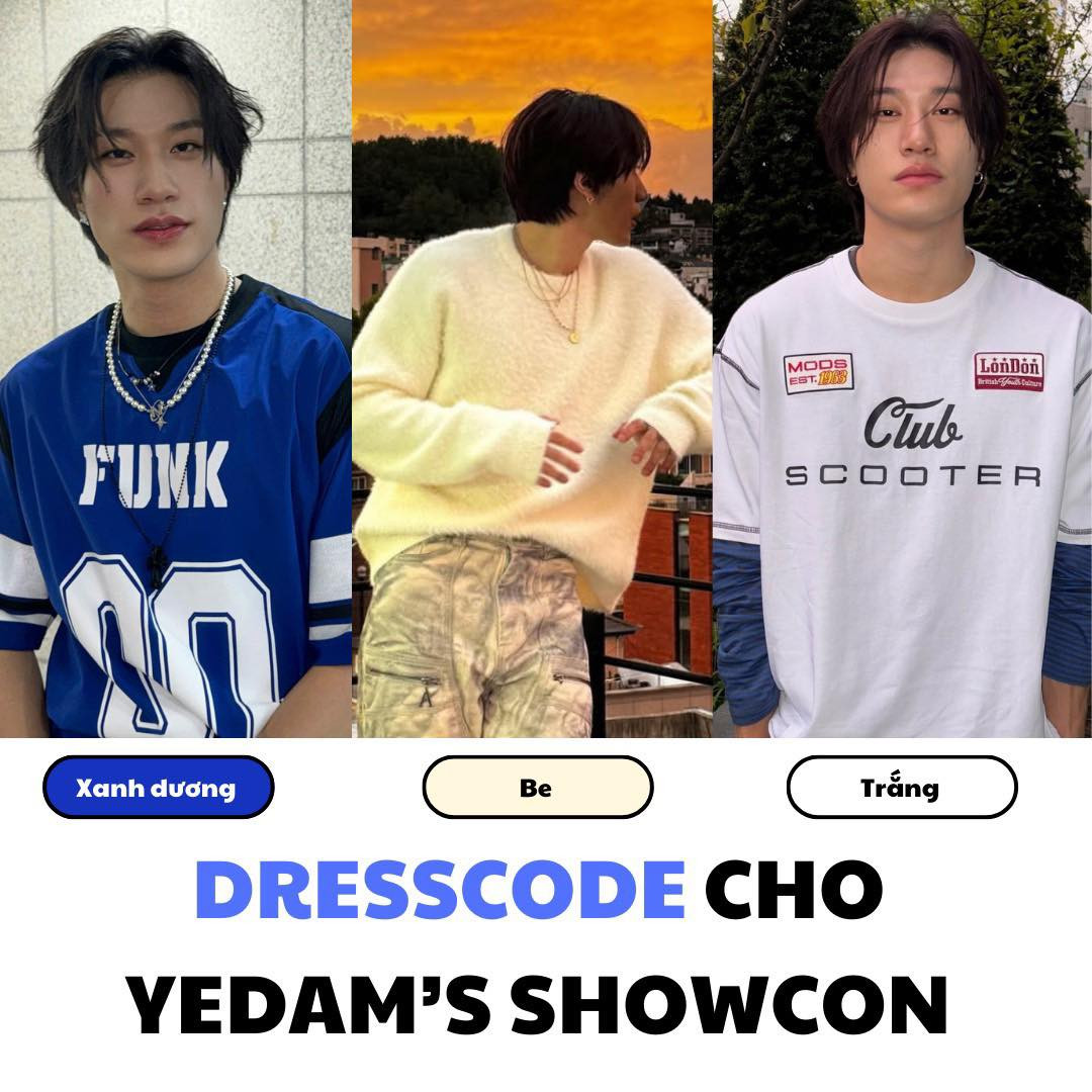 Chưa hết, BYDVN còn bật mí 3 màu gồm: Trắng, Be, Xanh Dương là màu drescode cho showcon của Yedam tại Việt Nam. Tới cuộc hẹn 23/3, các BY:D nhớ mặc chuẩn dresscode để chụp hình tone sur tone nha!