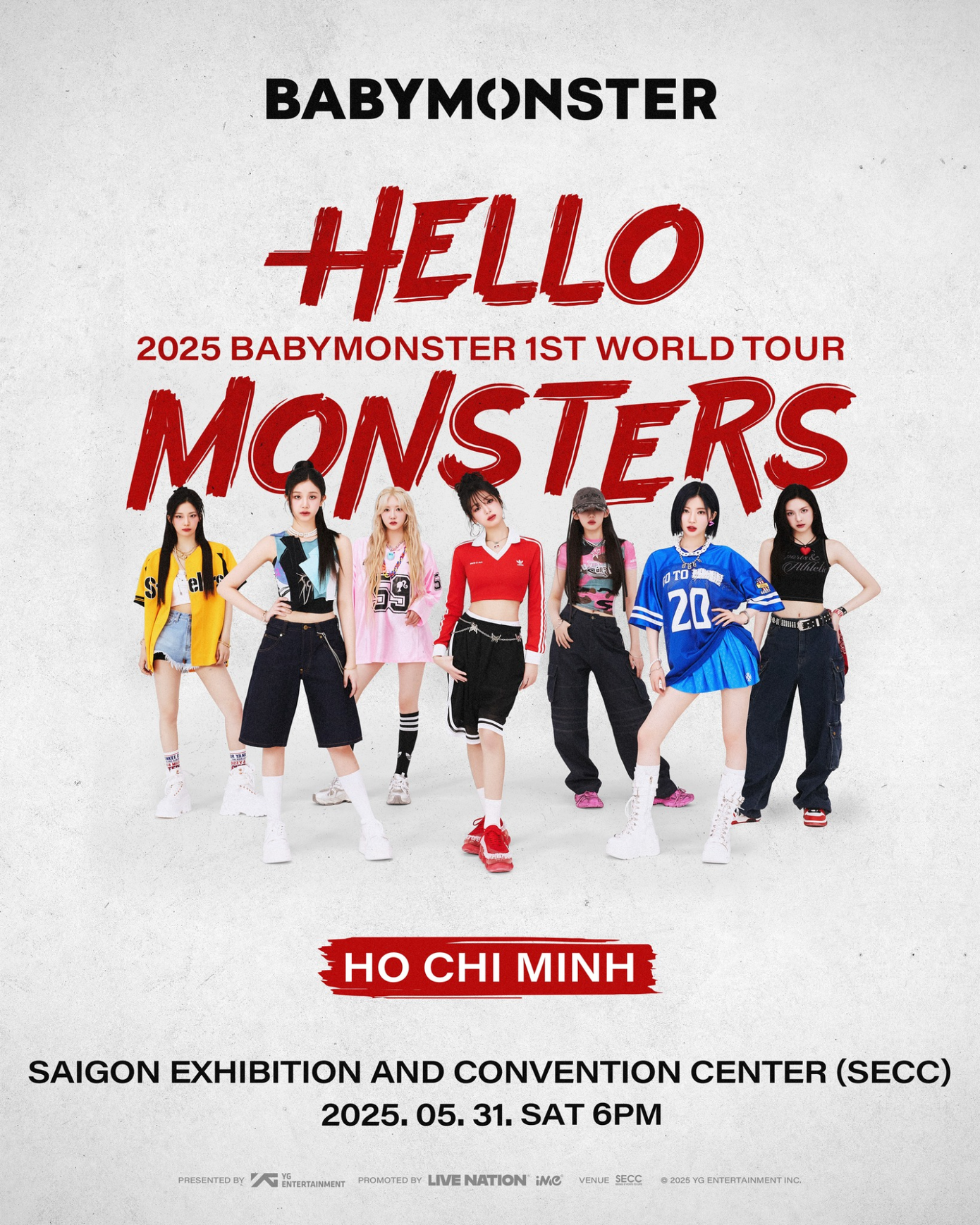 Với các Monstiez, tháng 3 là thời điểm cực kì quan trọng khi concert “Hello Monsters” của BABYMONSTER tổ chức tại TP.HCM chính thức mở bán vào cuối tháng. Concert dự kiến diễn ra tại Trung tâm Hội chợ và Triển lãm Sài Gòn (SECC) vào ngày 31/5/2025, địa điểm này có sức chứa từ 5.000 - 8.000 người, và buổi diễn bán 100% vé đứng.