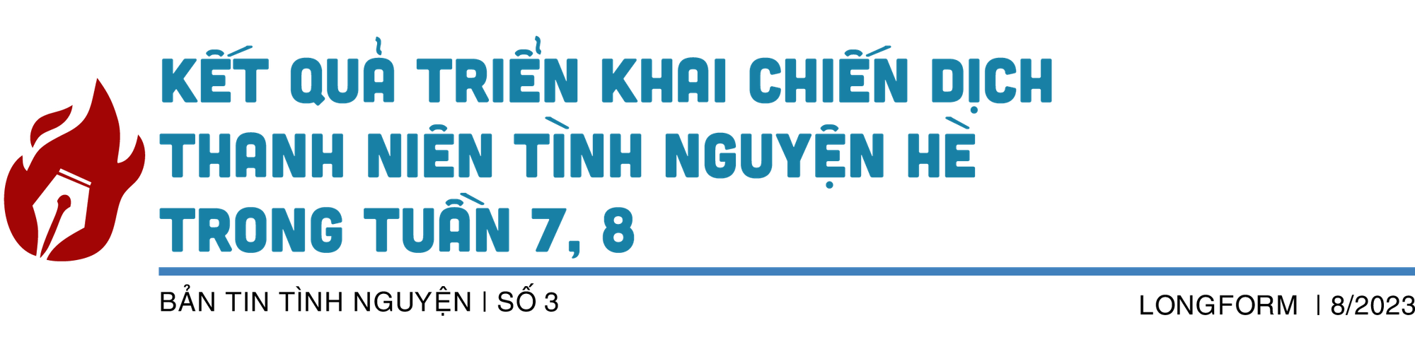 * Đối với hoạt động tại thôn, bản, ấp khó khăn được lựa chọn để hoàn thành tiêu chí xây dựng Nông thôn mới trở thành “Làng quê đáng sống” đã có 912 đội hình hoạt động tại các thôn, bản được lựa chọn hỗ trợ hoàn thành tiêu chí nông thôn mới, thu hút được 38.764 đoàn viên thanh niên tham gia, tổng kinh phí triển khai là 2,42 tỷ đồng.