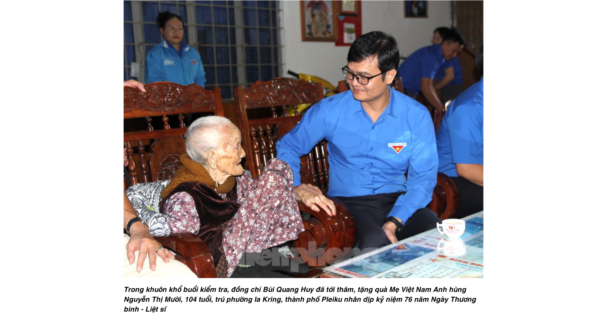 Ngày 21/7/2023, tại Gia Lai, đồng chí Bùi Quang Huy - Ủy viên Dự khuyết Trung ương Đảng, Bí thư thứ nhất Trung ương Đoàn làm Trưởng đoàn kiểm tra công tác triển khai Chiến dịch của Tỉnh đoàn Gia Lai. Trong khuôn khổ buổi làm việc, đoàn công tác đã tới thăm, kiểm tra, động viên và tặng quà đội thanh niên tình nguyện Mùa hè xanh của Trường đại học Công thương TP.Hồ Chí Minh tại xã Kim Tân, huyện Ia Pa và Trường đại học Nông lâm TP.HCM tại xã Ia Hiao, huyện Phú Thiện. Nhân dịp này, Trung ương Đoàn, Trung ương Hội Liên hiệp Thanh niên Việt Nam trao tặng Tỉnh Đoàn Gia Lai gồm: 01 công trình “Nhà nội trú cho em” trị giá 1 tỉ đồng; 02 công trình “Ngôi nhà hạnh phúc” trị giá 160 triệu đồng; tặng 100 túi an sinh gồm các thực phẩm thiết yếu cho người có công với cách mạng tại 3 huyện Ia Pa, Phú Thiện và Chư Sê, tỉnh Gia Lai.