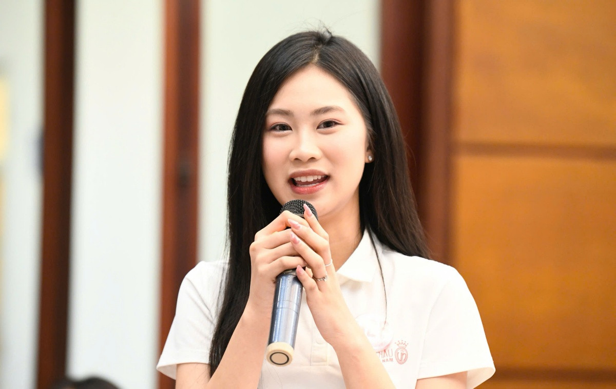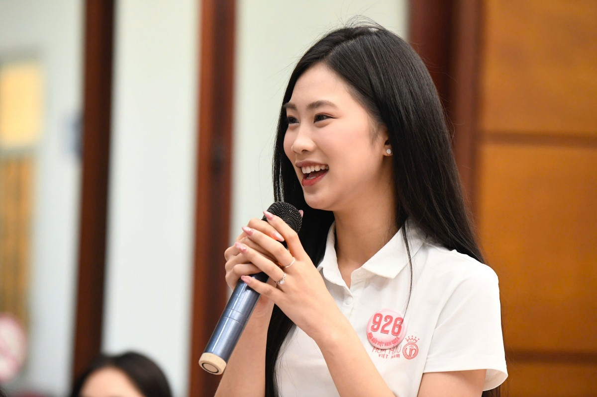 Thí sinh Nguyễn Thị Vân Nhi đặt câu hỏi về nhiệm kỳ của tân Hoa hậu và việc cuộc thi tổ chức vắt từ năm 2024 sang 2025, liệu tân Hoa hậu có đủ thời gian để hoàn thành tốt nhiệm kỳ hay không?