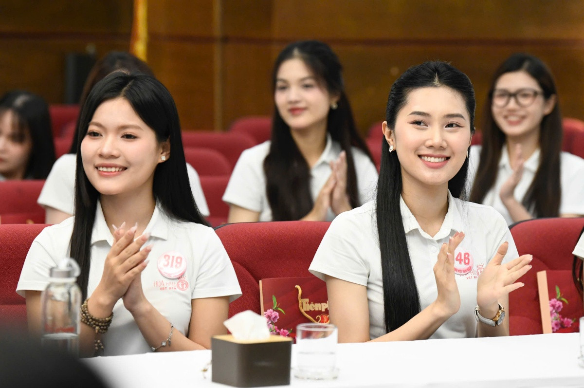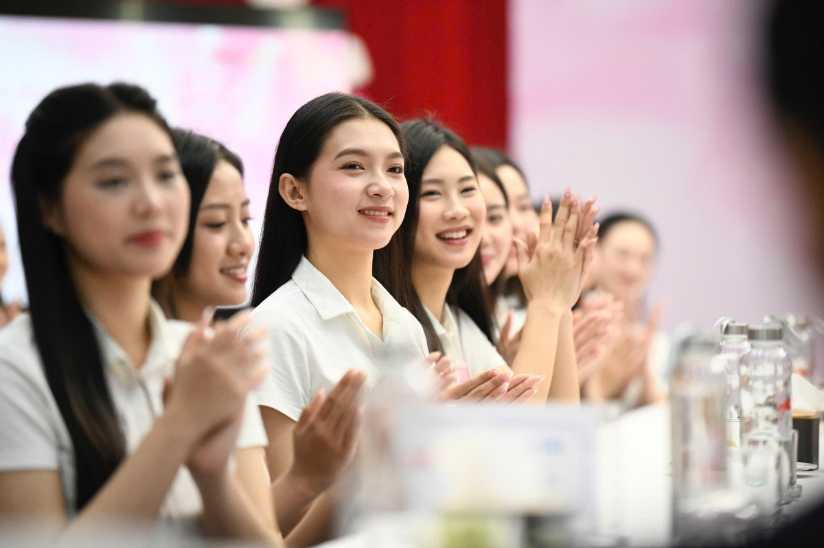 Top 41 Hoa hậu Việt Nam 2024 khoe nhan sắc xinh đẹp tự nhiên tại buổi giao lưu.