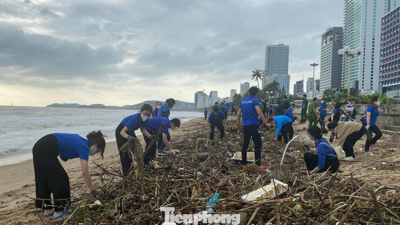 Sáng 2/12, Công ty CP Môi trường đô thị Nha Trang đã huy động nhiều phương tiện và hơn 100 công nhân dọn dẹn, thu gom xử lý rác thải tại bãi biển Nha Trang. Bên cạnh đó, khoảng 500 đoàn viên, thanh niên và lực lượng vũ trang tỉnh Khánh Hoà cũng tham gia dọn rác thải tại đây.