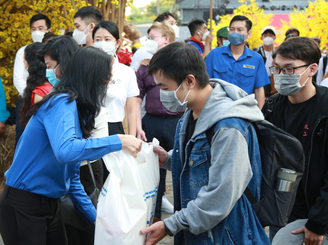 Chiều cùng ngày, Thành Đoàn – Trung tâm Hỗ trợ học sinh, sinh viên TPHCM tổ chức chương trình “Xuân từ triệu tấm lòng vàng” với mục đích chăm lo, trao tặng 1.500 phần quà Tết cho học sinh, sinh viên khó khăn, đặc biệt là học sinh, sinh viên chịu ảnh hưởng nặng nề từ dịch bệnh COVID-19. Trong chương trình, mỗi học sinh, sinh viên đón Tết xa nhà sẽ được tặng một phần quà trị giá 1 triệu đồng.