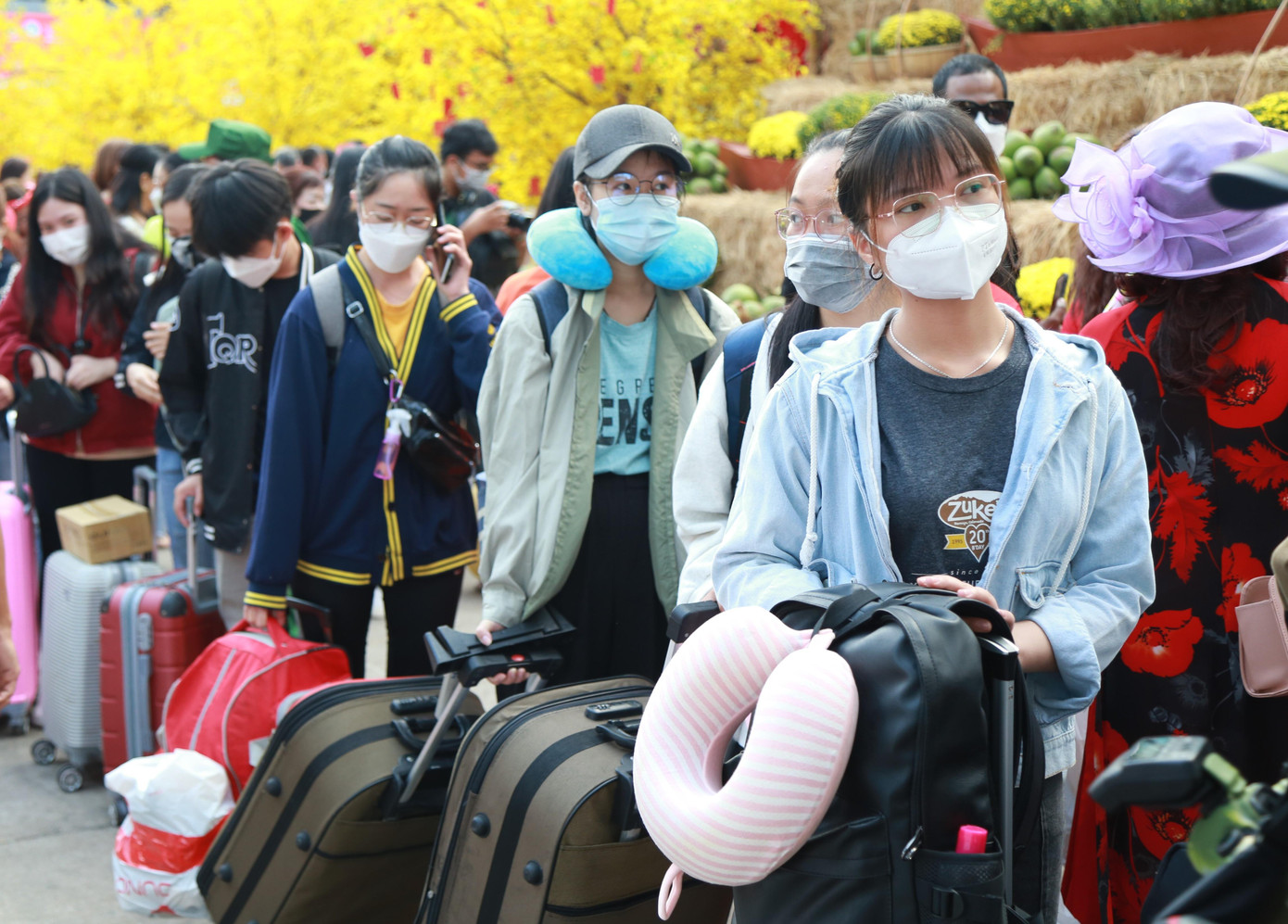 | Bạn trẻ vẫy chào TPHCM, về quê đón Tết đoàn viên. |