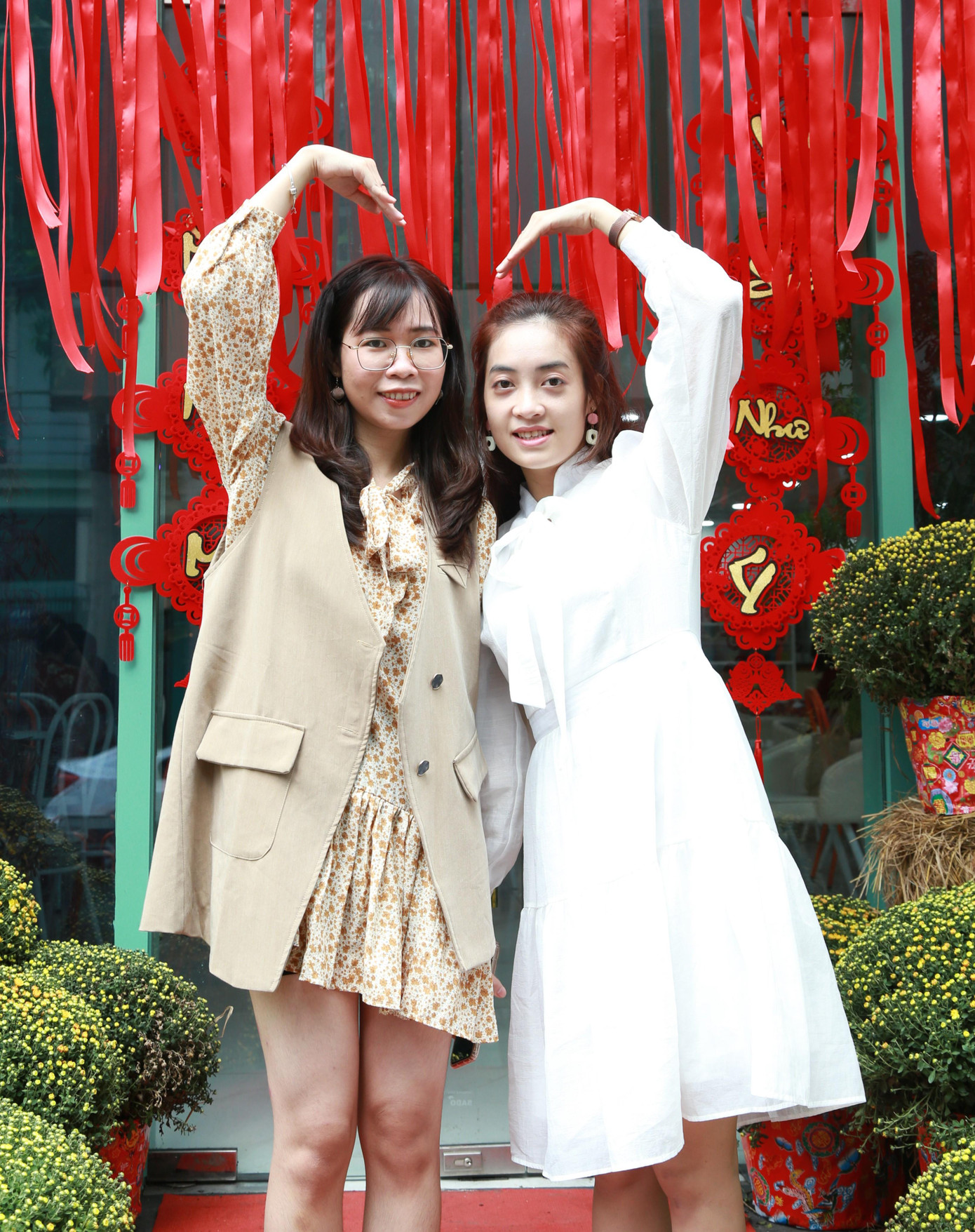| Bạn trẻ tươi tắn tạo dáng chụp ảnh đón Tết. |