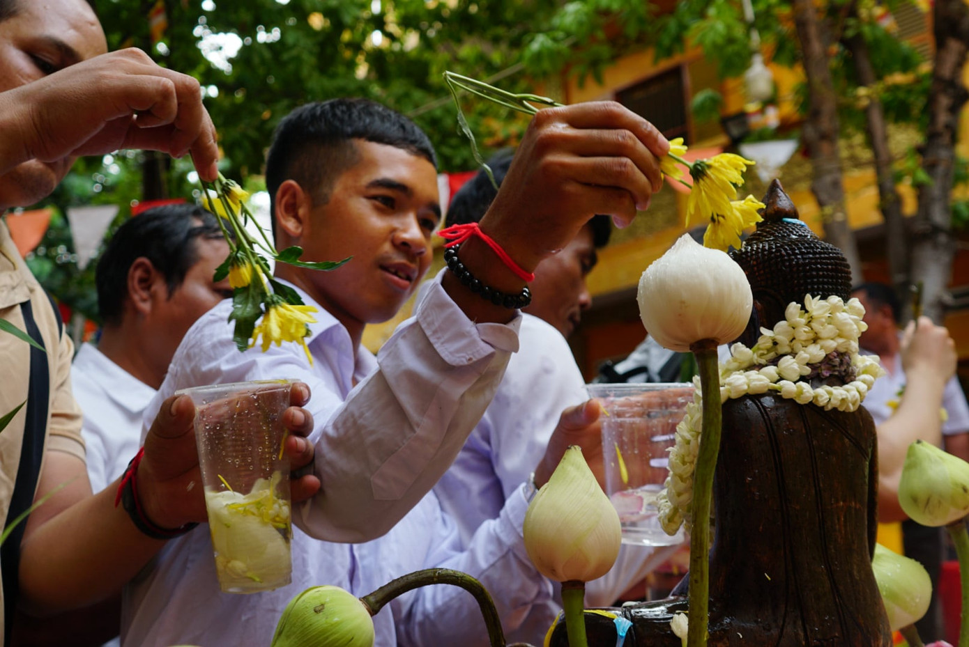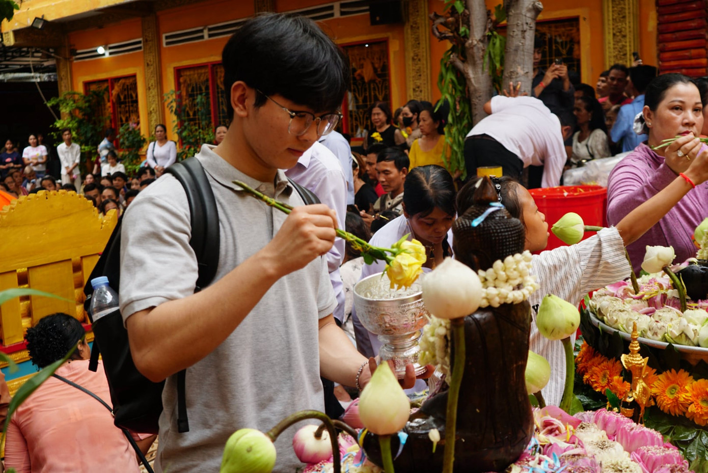 Thư Thắm (ngành Truyền thông Đa phương tiện, trường ĐH KHXH&NV, ĐHQG TP. HCM) chia sẻ: “Đây là lần đầu tiên mình tham gia Chôl Chnăm Thmây. Không gian ở chùa rất đặc biệt, vừa có không khí lễ nghi, vừa gần gũi, thoải mái. Mình thích nhất phần tắm Phật – cảm giác như tâm trí được giải tỏa, bỏ hết mấy chuyện không vui của năm cũ. Màn té nước, ai cũng vui và cười nói rôm rả".