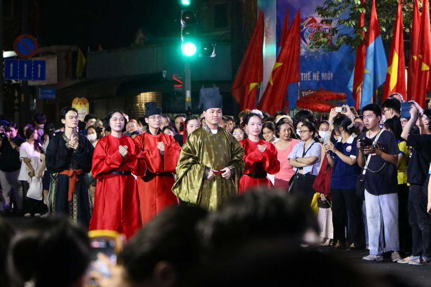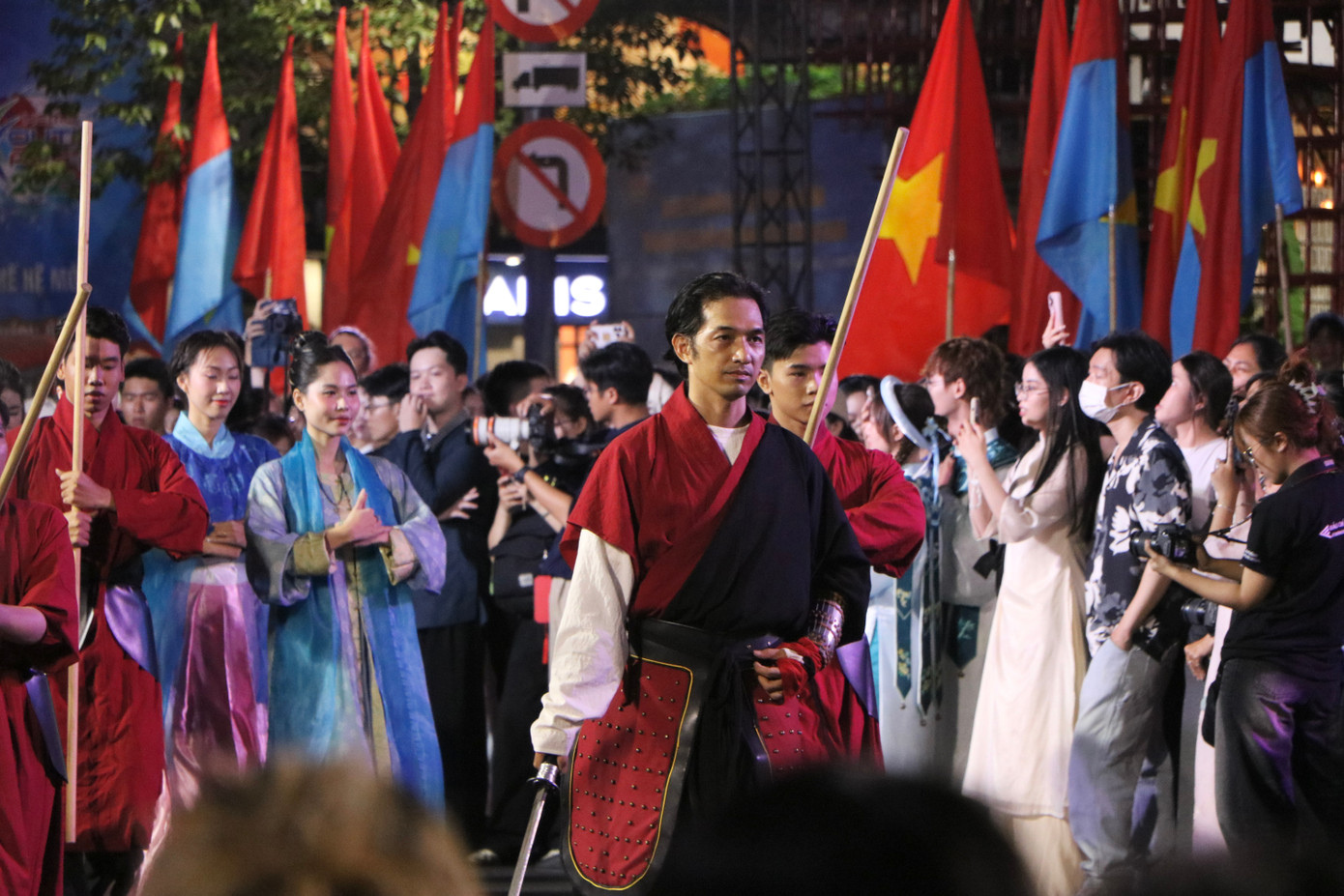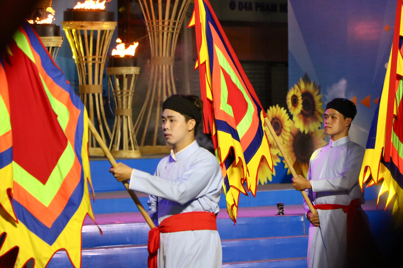 | Đêm hội còn mang đến các tiết mục trình diễn nghệ thuật, tái hiện những câu chuyện lịch sử qua sân khấu hóa, giúp khán giả hòa mình vào bầu không khí văn hóa đầy tự hào. |