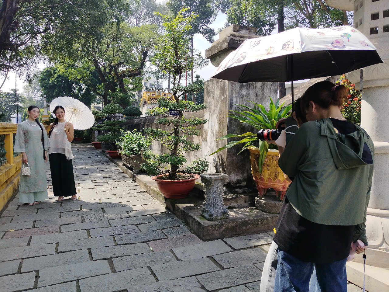| Phương cùng ê kíp chụp ảnh tại Lăng ông Bà Chiểu (Q. Bình Thạnh, TP. HCM). |