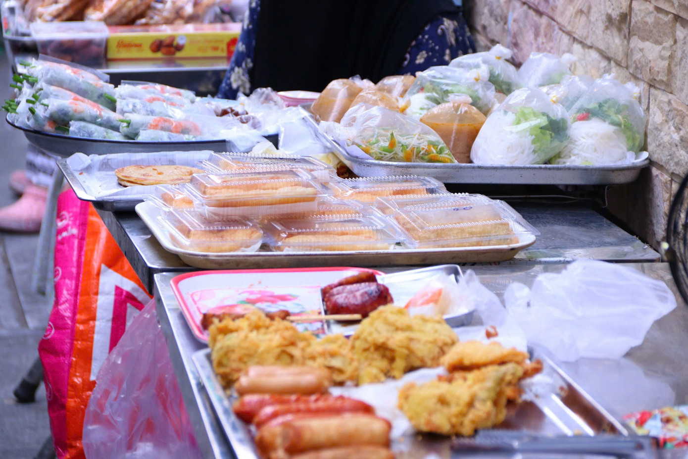 | Bánh bột mì, các món chiên, nước sâm, cà ri Ấn Độ... rất nhiều món ăn trải dài khắp con hẻm để chiều lòng thực khách. |