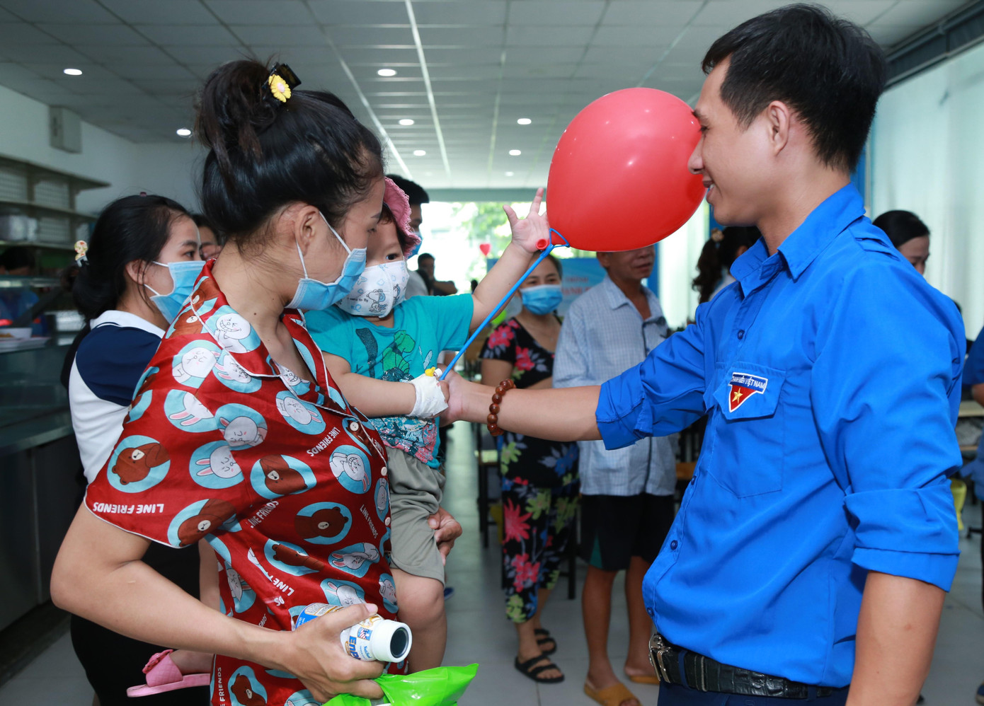 | Cán bộ, nhân viên y tế, đoàn viên thanh niên các đơn vị chung tay mang đến chương trình Bữa trưa hạnh phúc đong đầy tình yêu thương gửi tặng các bệnh nhân. |