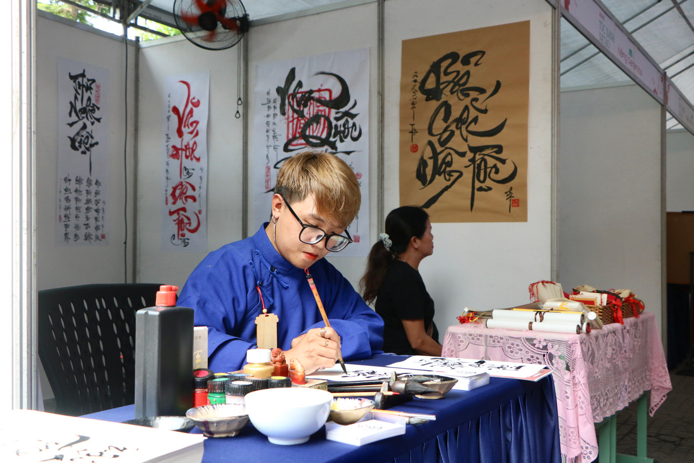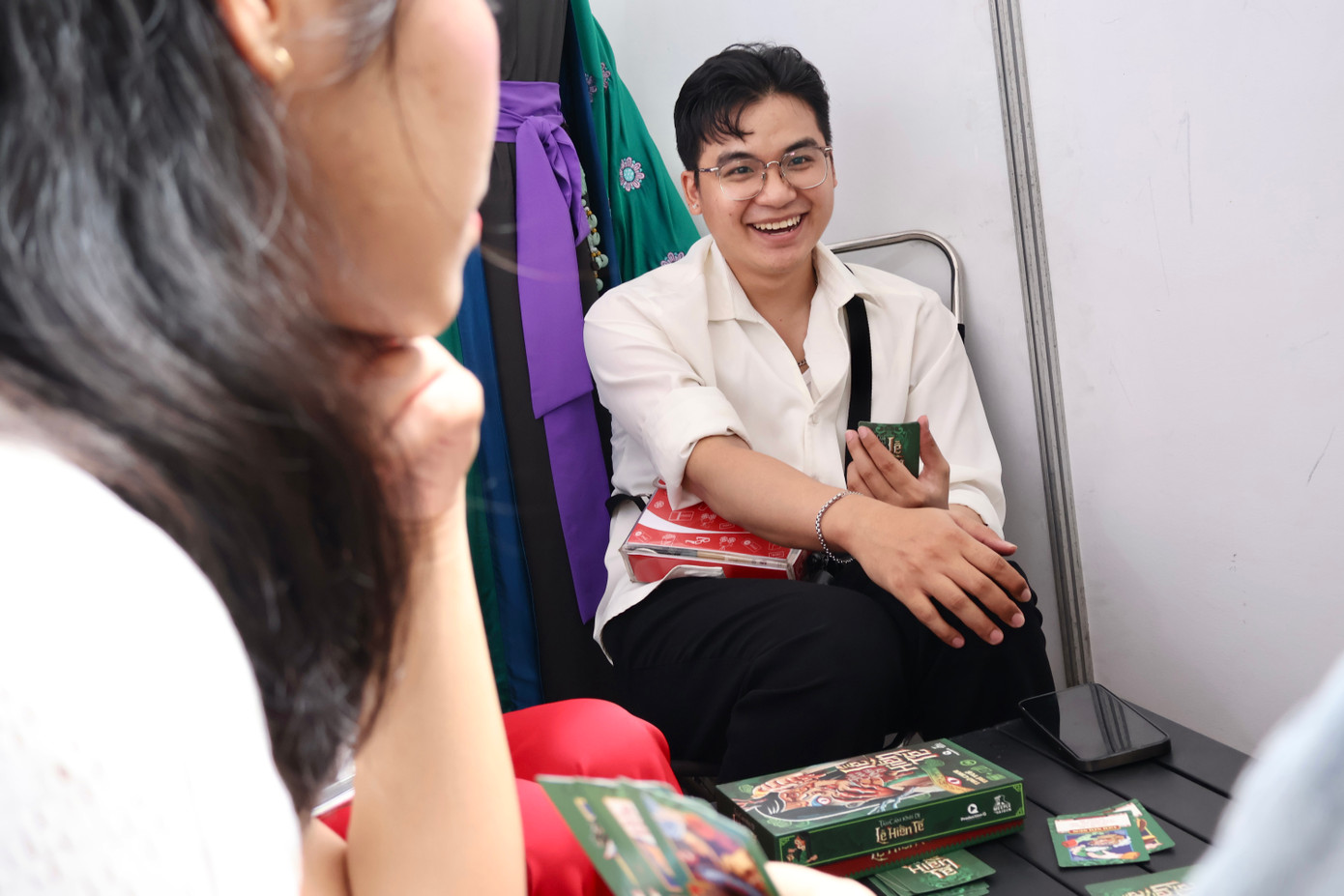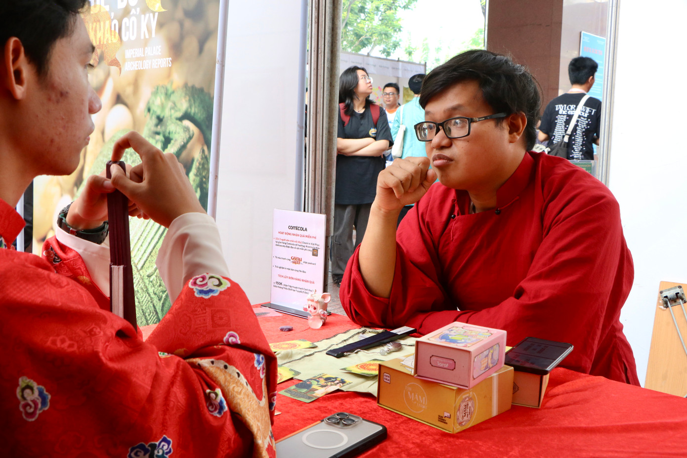 | Đến với ngày hội, các bạn trẻ được tham gia nhiều hoạt động thú vị: mặc thử Việt phục, vẽ tranh mộc bản, chụp hình photobooth, xin thư pháp, bói tarot… |