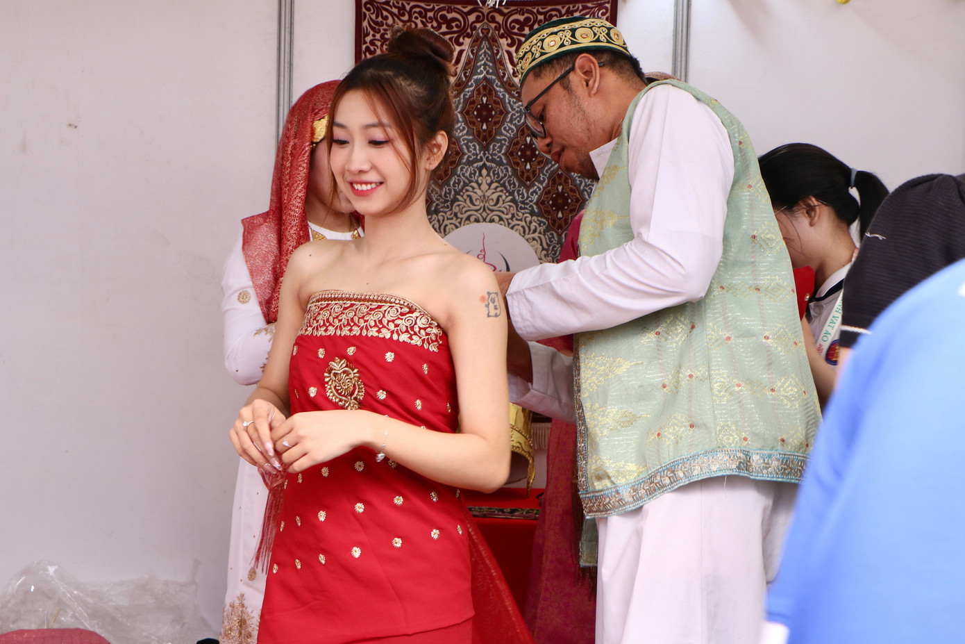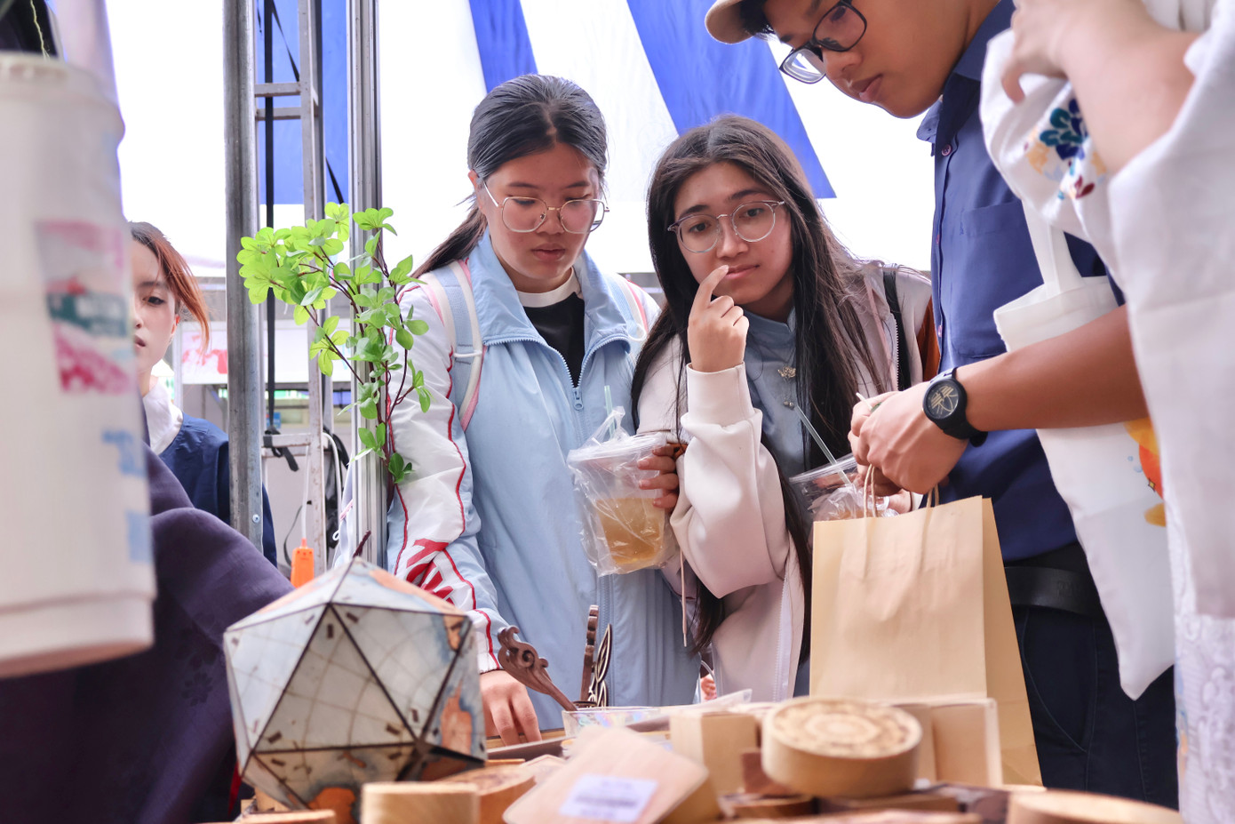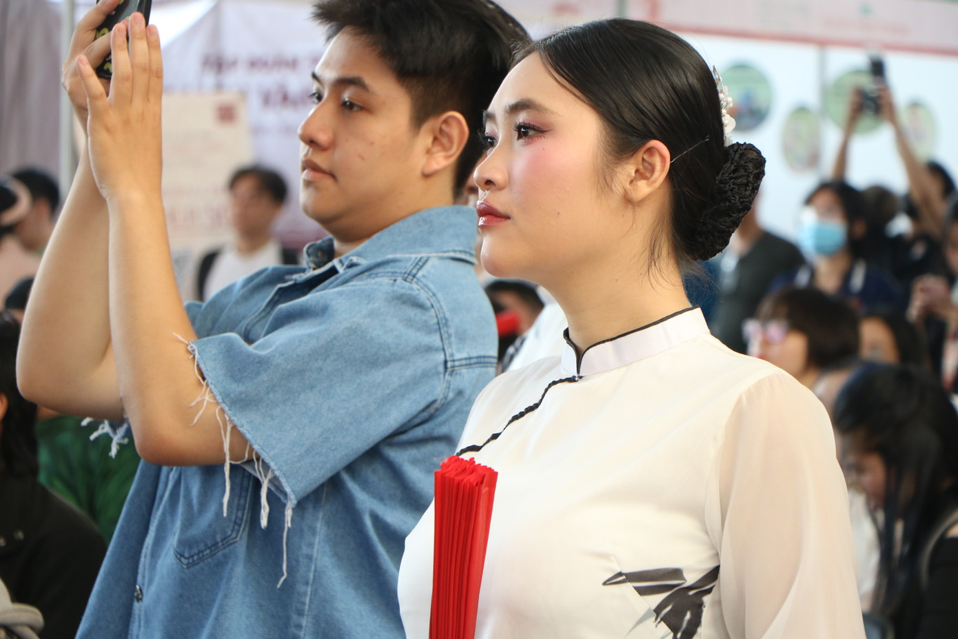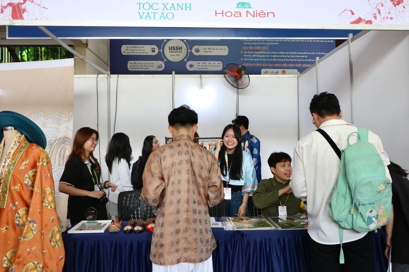 | Khoác lên mình những bộ Việt phục rực rỡ, các bạn trẻ hào hứng tham quan không gian sự kiện và trải nghiệm các gian hàng. Thông qua đó, các bạn trẻ có cơ hội được tiếp cận gần hơn với nét đẹp của nghệ thuật, văn hóa dân tộc. Đó cũng chính là một trong những mục đích của 'Tóc xanh vạt áo' mang lại. |