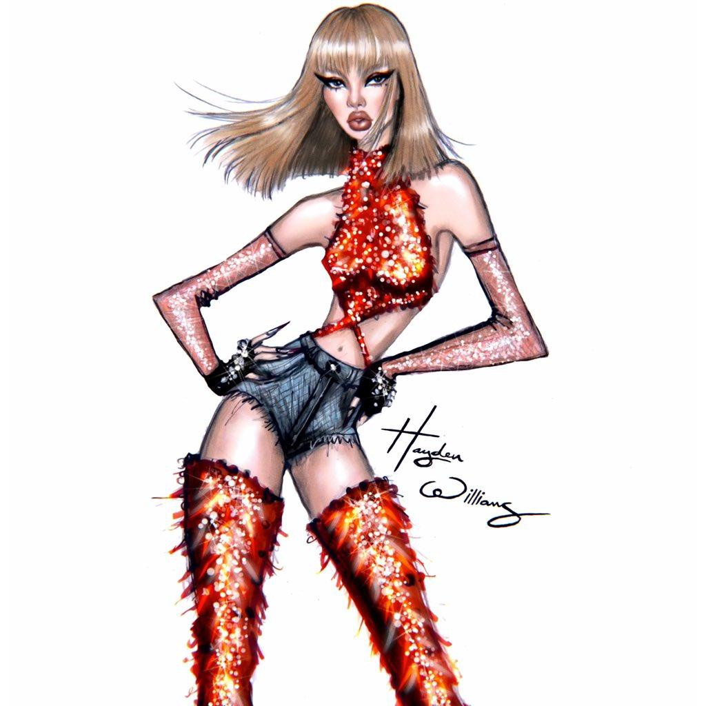 Tuy vậy, dựa vào những hình ảnh mờ ảo này, một designer nổi tiếng người Anh là Hayden Williams đã vẽ lại khá chi tiết trang phục của Lisa trong poster đầu tiên này theo một hướng khác. Theo như minh họa này của Hayden, Lisa sẽ mặc áo dạng yếm đính đá và lông màu đỏ, mặc quần soóc jeans và đi đôi bốt cao cổ đính đá và lông màu đỏ giống với chiếc áo yếm.