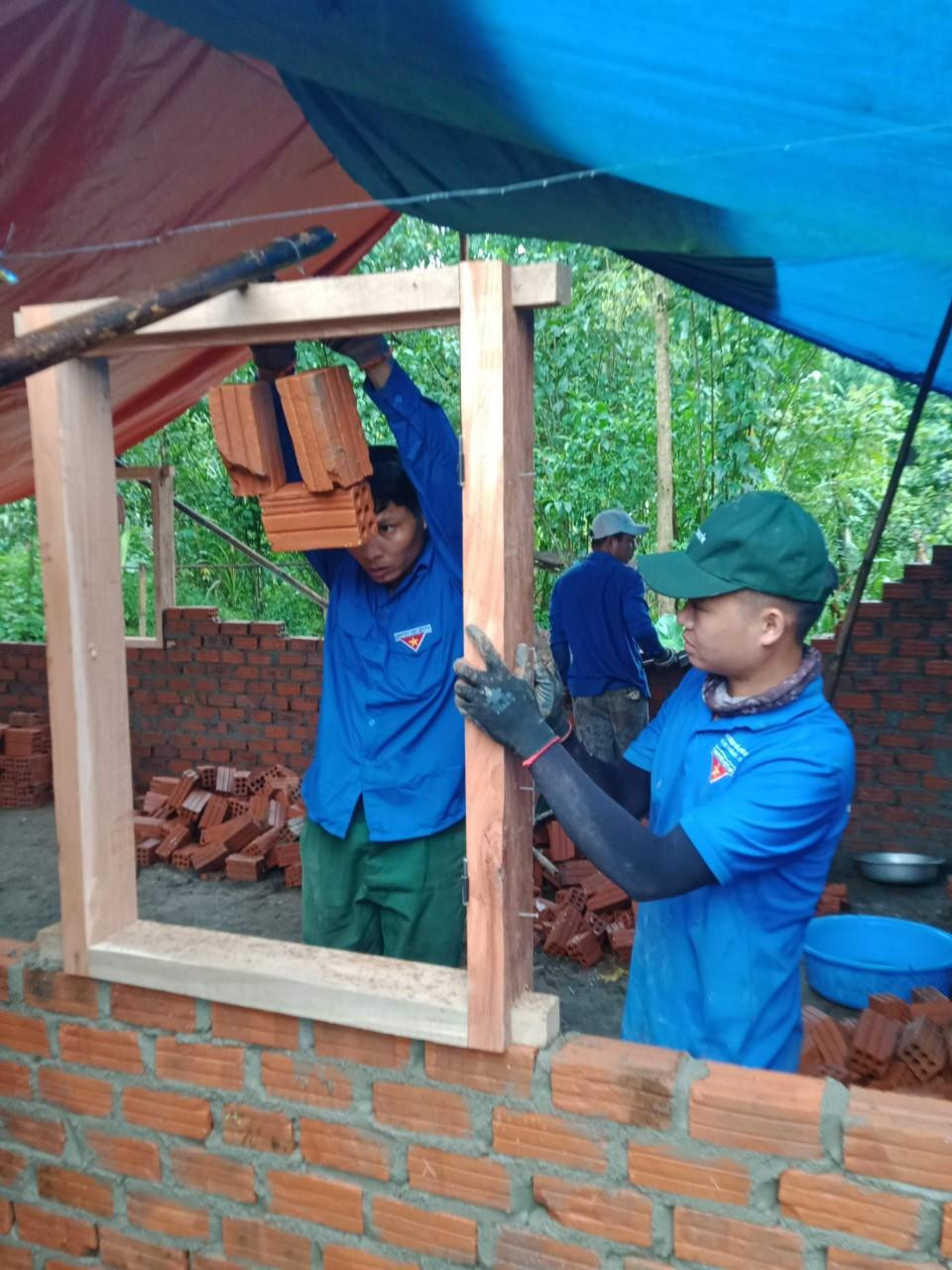 Qua 4 đợt băng rừng, lội suối để vận chuyển vật liệu, làm móng nhà, đến nay đã hoàn thành ngôi nhà nơi biên cương cho hộ gia đình khó khăn. Dự kiến trong tuần tới sẽ hoàn thiện phần thô và bàn giao cho gia đình anh Gióng.