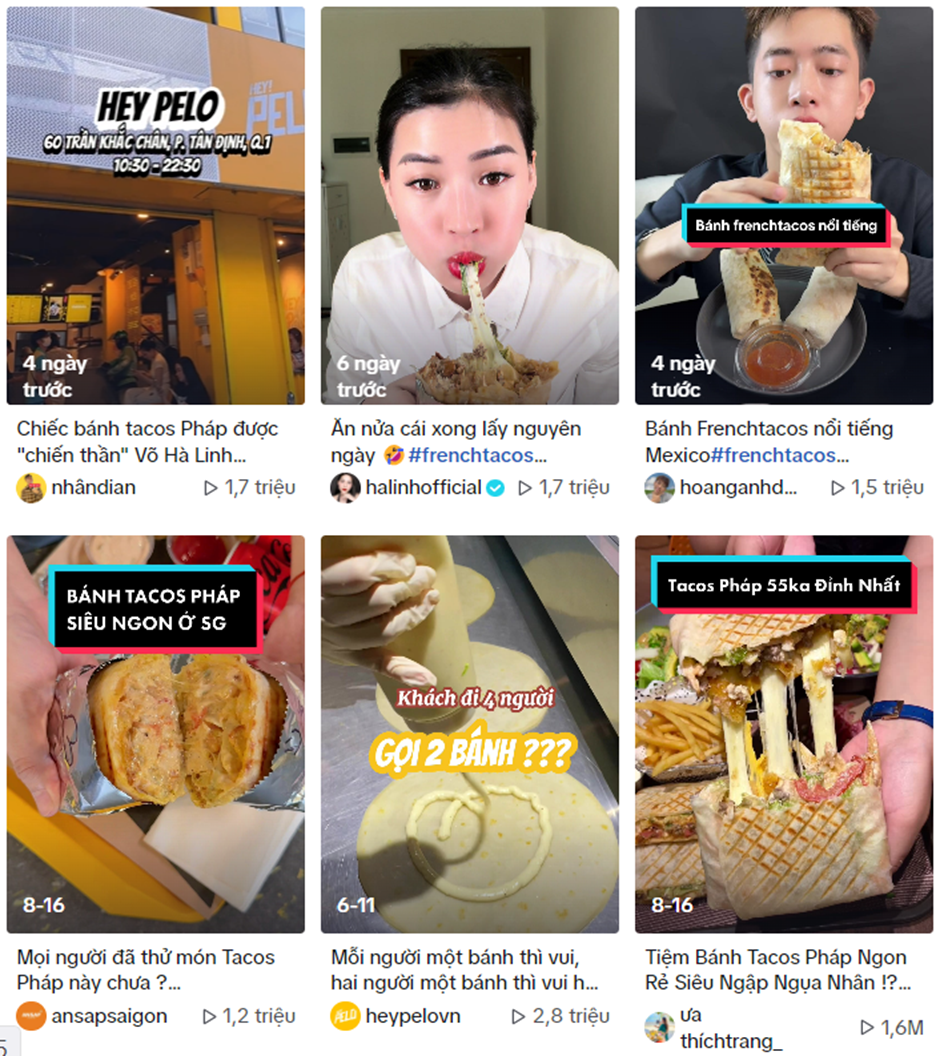 Ở Hà Nội, không khó để bạn tìm thấy một quán bán tacos Pháp như Hey Pelo, Tacos Abeille, M’Tacos, TAetNa... Đến thời điểm hiện tại, cơn sốt bánh tacos Pháp vẫn chưa có xu hướng hạ nhiệt, dự đoán đây sẽ là loại bánh chiếm sóng "Tóp Tóp" dịp cuối năm.