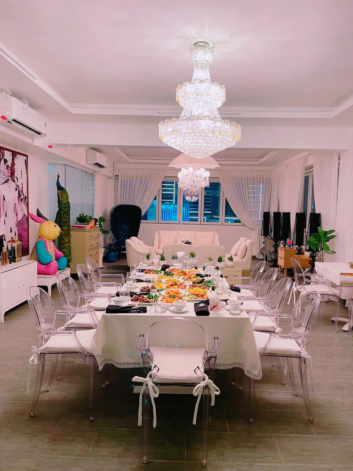 Cơ ngơi của nữ nghệ sĩ mang tông trắng chủ đạo, mọi ngóc ngách trong nhà đều được trang bị nội thất cao cấp với nhiều khu vực được sử dụng với các mục đích khác nhau: Một trường quay có đầy đủ thiết bị chuyên nghiệp, phòng karaoke, khu giải trí… Người đẹp 9X còn thuê hẳn đầu bếp riêng để chuẩn bị những bữa ăn đúng ý chủ nhân và một chuyên gia cắm hoa giúp cô làm đẹp cho căn nhà của mình mỗi ngày.