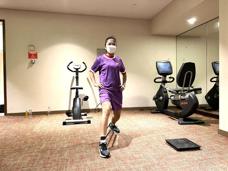 Sáng nay, bác sỹ của đội đã tiến hành lấy mẫu xét nghiệm nhanh COVID-19 cho tất cả các thành viên trước giờ ăn sáng và đều nhận kết quả âm tính. Sau đó, Huỳnh Như cùng 4 cầu thủ còn lại được xuống phòng gym tập nhẹ với HLV Cedric.
