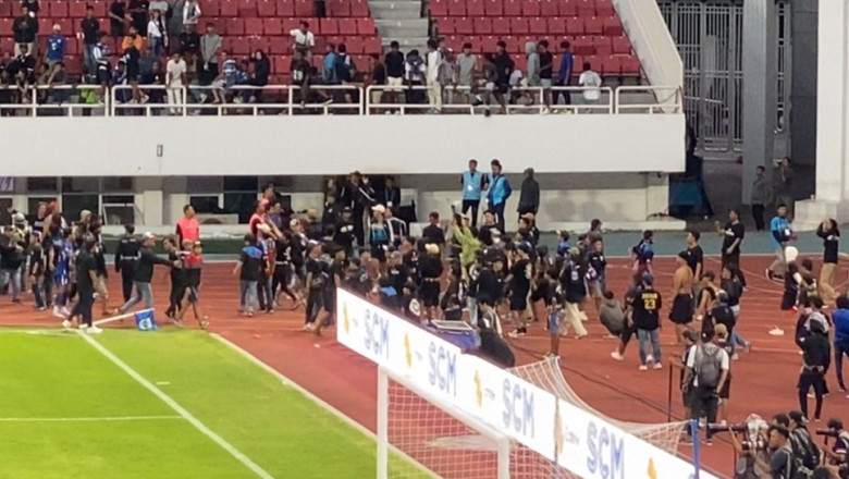 Kể từ đó, bạo động bắt đầu bùng lên. Hai nhóm CĐV quá khích lao vào nhau để tấn công bằng vũ lực. Họ cũng tràn xuống sân, phá phách cơ sở vật chất, tạo ra khung cảnh rất hỗn loạn. Họ tấn công cả sếp lớn của LĐBĐ Indonesia (PSSI). Giám đốc điều hành Yoyok Sukawi bị đánh vào đầu và cần sự chăm sóc y tế. Ông Sukawi phải khâu 8 mũi và sau đó rời sân với cái đầu rướm máu.