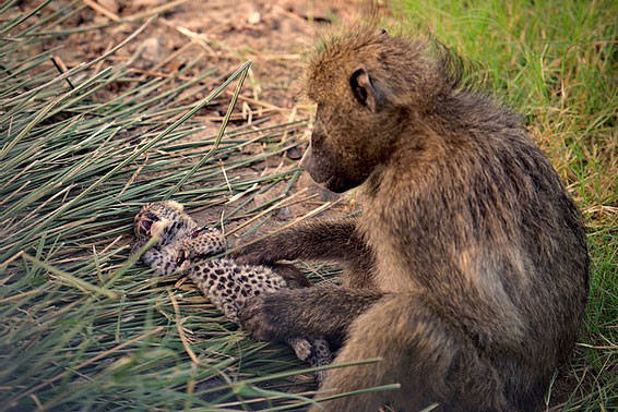 Dù không có ý định giết báo con, nhưng sự vụng về cùng với việc không có sữa cho những chú báo uống nên con khỉ đầu chó đã vô tình giết chết 2 chú báo.