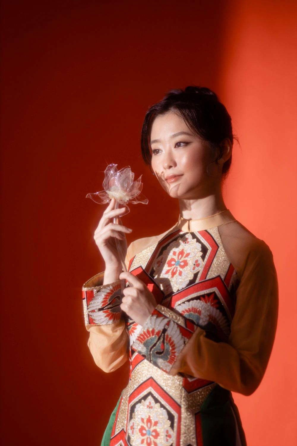 “Người Nhật có quan niệm rất khắt khe về văn hoá truyền thống, ví dụ Obi (dây thắt lưng của Kimono) phải nằm đúng chỗ của Obi. Vì thế khi biết chị Ngọc Hân sử dụng Obi để may áo dài thì tôi rất bất ngờ, thậm chí tò mò không biết chiếc áo dài sẽ như thế nào. Tôi cũng từng có suy nghĩ làm thế nào để tạo ra một trang phục ‘độc nhất vô nhị’, kết hợp được vẻ đẹp của áo dài và Kimono nhưng lại chưa thể tìm ra đáp án suốt 6 năm qua”, nữ diễn viên thổ lộ.