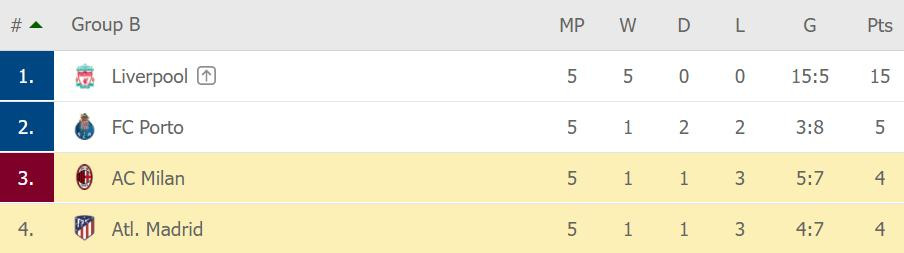 Ở lượt trận hạ màn, AC Milan sẽ tiếp đón Liverpool tại sân nhà Anfield. Để đi tiếp, thầy trò Pioli cần giành chiến thắng, đồng thời hy vọng Porto không thắng Atletico Madrid ở trận cùng giờ.