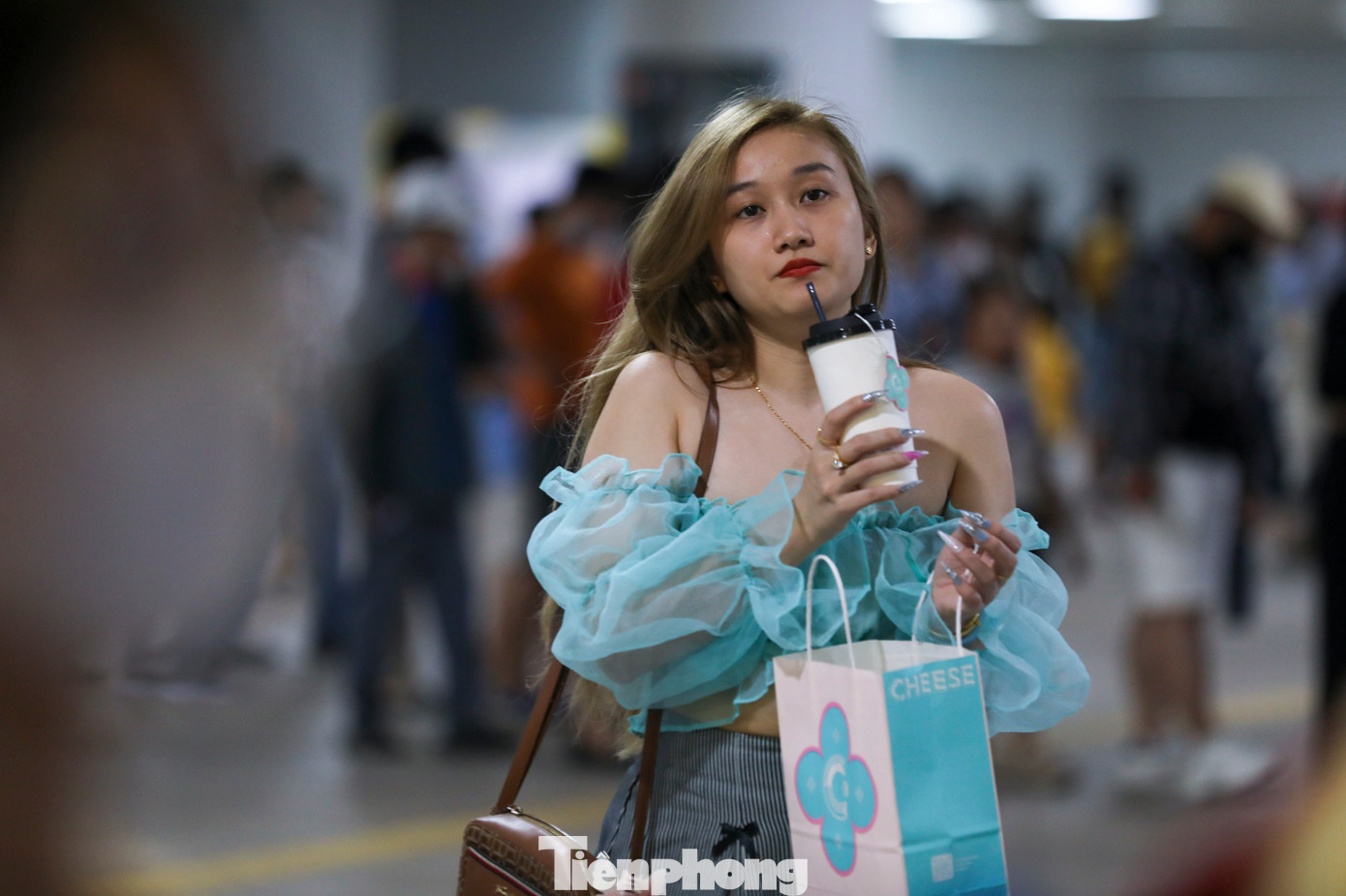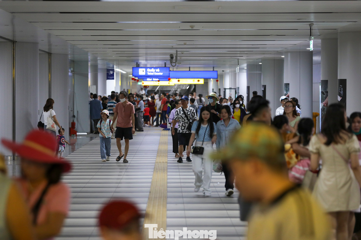 | Trong ảnh, người dân chờ tàu metro số 1 tại ga Bến Thành để về nhà sau một ngày đi chơi. |