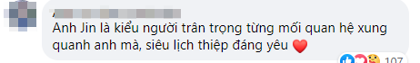 Netizen dành vô số lời khen ngợi cho anh cả BTS. Người hâm mộ của Jin cũng được dịp "phổng mũi":