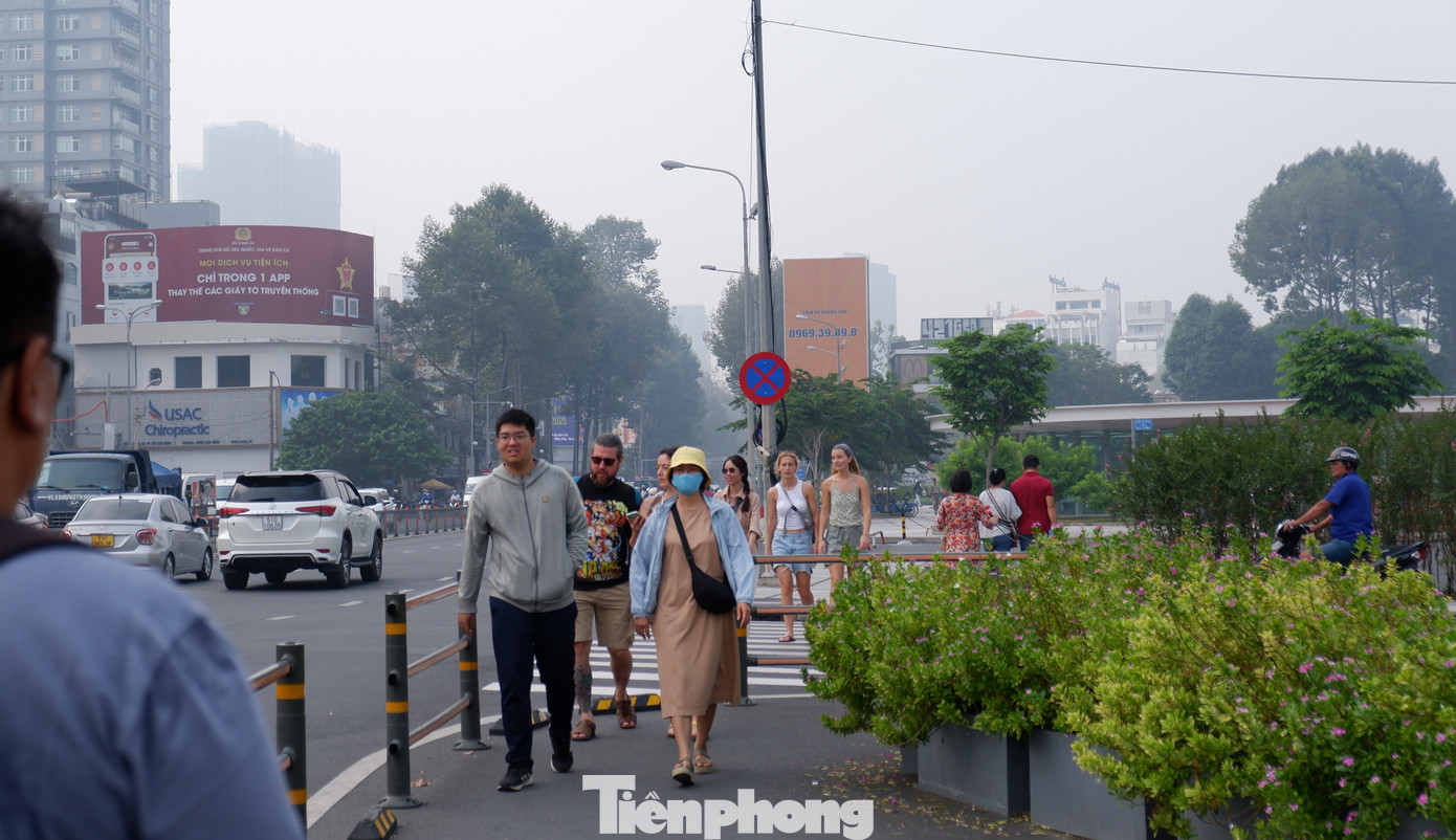 | Các tuyến đường ở trung tâm TPHCM mù mịt sương mờ. |