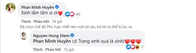 Không chỉ người hâm mộ mà nhiều diễn viên vũ trụ phim VTV đều thả tim, khen ngợi diện mạo mới của Hồng Diễm. Trong số đó có cả Lan Phương và Huyền Lizzie, hai diễn viên đang tham gia Thương Ngày Nắng Về. Hồng Diễm đã nhanh chóng chứng tỏ mình theo dõi Thương Ngày Nắng Về không sót tập nào khi khẳng định cô rất thích gia đình Đức - Khánh do Hồng Đăng, Lan Phương thể hiện. Nữ diễn viên cũng gọi Huyền Lizzie là “cô Trang”, tên nhân vật trong Thương Ngày Nắng Về.