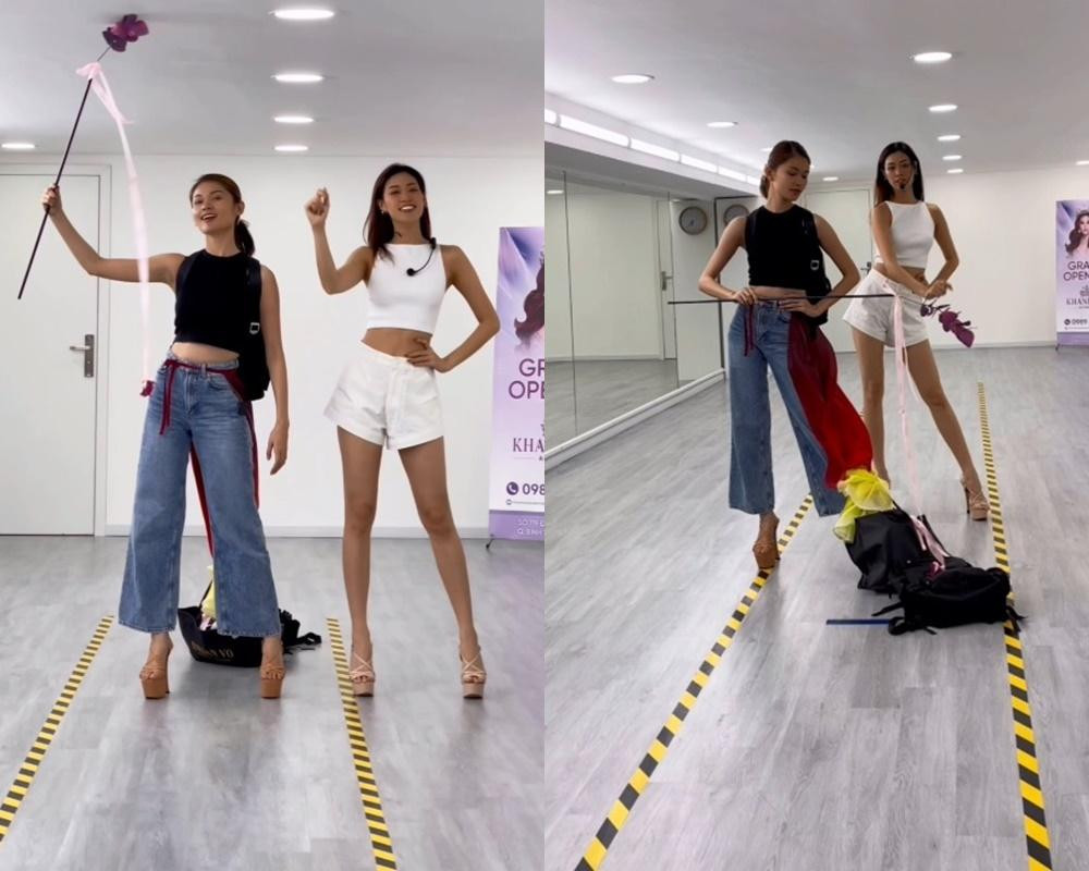 Do đó, cô quyết định nhờ đến sự giúp đỡ của người chị thân thiết - Hoa hậu Hoàn vũ Việt Nam 2019 Khánh Vân. Lúc này, vì chưa có trang phục chính thức nên hai chị em đành tùy cơ ứng biến như: Đeo ba lô nặng để tập trình diễn, làm giả động tác câu cá… Hoa hậu Khánh Vân tận tình hướng dẫn Thùy Dung từng biểu cảm, động tác nhỏ sao cho thuần thục, đẹp mắt.