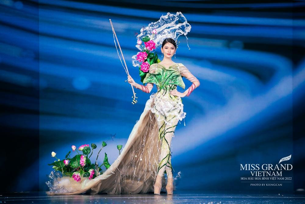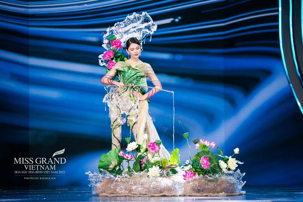 Màn trình diễn gây ấn tượng mạnh với khán giả theo dõi bởi thiết kế đẹp, tinh xảo. Thùy Dung đã mang cả ao sen có phần cồng kềnh lên sân khấu. Hơn thể nữa, trong ao sen còn có cá để nàng Á hậu trổ tài câu cá trước mắt khán giả.