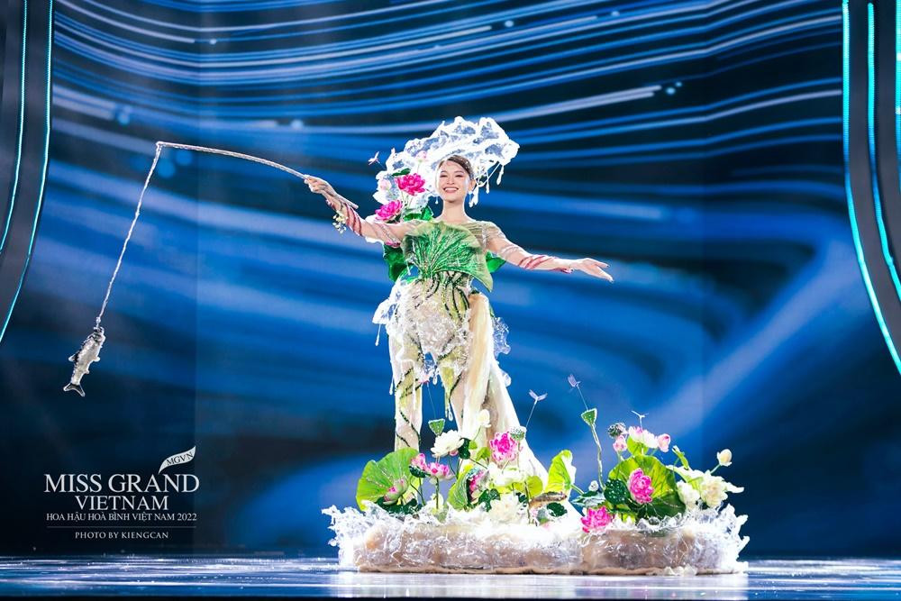 HHTO - Á hậu Thùy Dung đã để lại ấn tượng mạnh trong đêm trình diễn trang phục truyền thống ở Miss Grand Vietnam 2022. Không chỉ mang cả ao sen lên sân khấu, Thùy Dung còn trổ tài câu cá khiến khán giả hết sức thích thú.