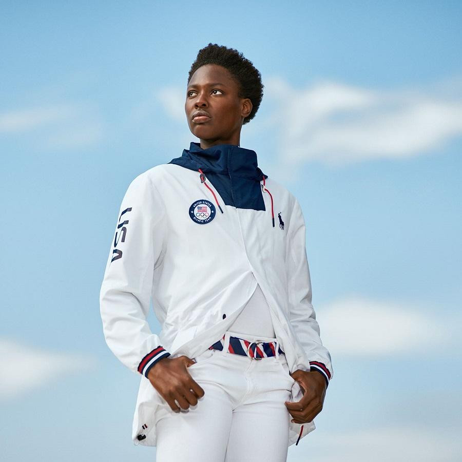 Đồng phục bế mạc Olympic của đội tuyển Mỹ do nhà mốt đình đám Ralph Lauren thiết kế với áo thun polo, áo gió và quần jeans trắng. Thắt lưng cùng các chi tiết màu đỏ và xanh navy được điểm xuyết tinh tế, tạo điểm nhấn cho trang phục. Đặc biệt, trang phục còn được trang bị công nghệ làm mát nhằm giúp các vận động viên có thể đối phó với tiết trời nắng nóng ở Tokyo.