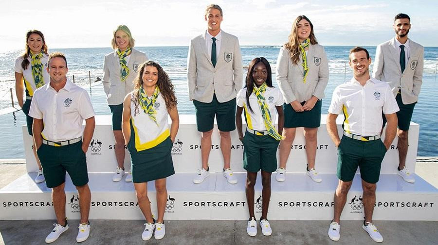 Trang phục của đội tuyển Úc được giới mộ điệu đánh giá rất cao tại Thế Vận Hội năm nay. Lấy cảm hứng từ ánh đèn rực rỡ trên giao lộ Shibuya của Tokyo, bộ trang phục gồm áo khoác blazer phối cùng quần hoặc chân váy màu xanh đậm, với điểm nhấn là chiếc khăn quàng cổ hoạ tiết được thiết kế bởi Sportscraft - nhà cung cấp đồng phục chính cho đội tuyển Úc từ năm 1996. Tuy nhiên, cũng có ý kiến cho rằng bộ đồng phục này có phần giống với đồng phục của một hãng hàng không hơn là một Thế Vận Hội.
