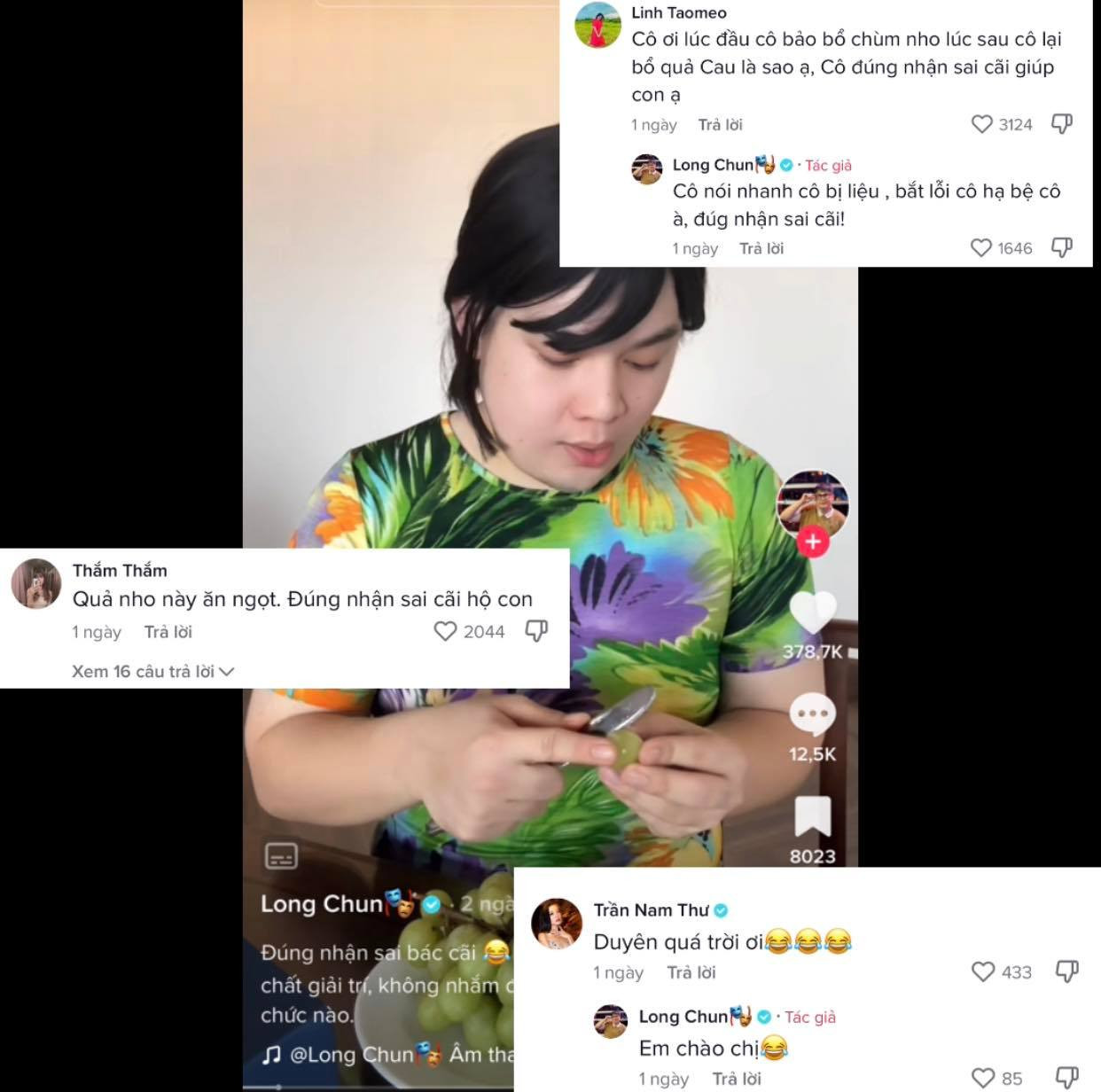 Bên cạnh đó, nhiều nghệ sĩ Việt cũng bắt chước trào lưu “đúng nhận sai cãi” với các video gây cười thu hút cả triệu lượt xem như: video của hot TikToker Long Chun, diễn viên Lê Dương Bảo Lâm…