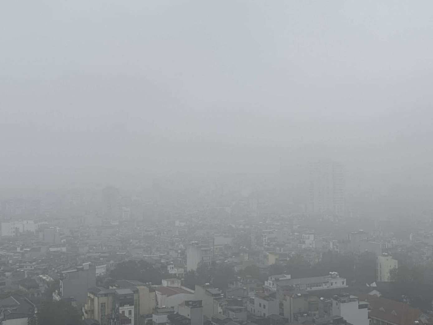 Sáng sớm 18/4, thủ đô Hà Nội bị bao phủ bởi lớp sương mù dày đặc, che khuất các tòa nhà và chung cư cao tầng, khiến tầm nhìn bị hạn chế.