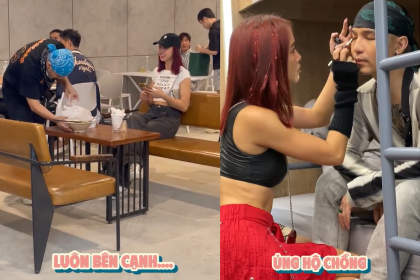 Sự xuất hiện của diễn viên Vũ Ngọc Anh - bà xã Cường Seven khiến "anh tài" như được "sạc" thêm năng lượng. Người đẹp không ngại dành cho chồng những hành động chăm sóc đầy yêu thương, ngọt ngào.