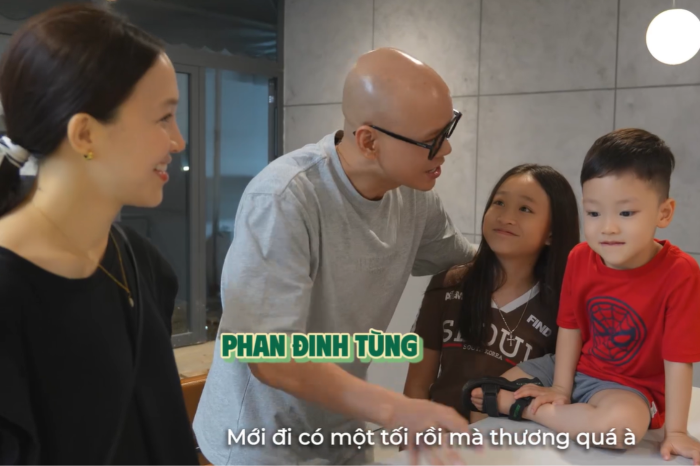 Sau cuộc trò chuyện hài hước của BB Trần và gia đình Tiến Luật, bà xã Rhymastic và con trai cũng đến thăm nam rapper.