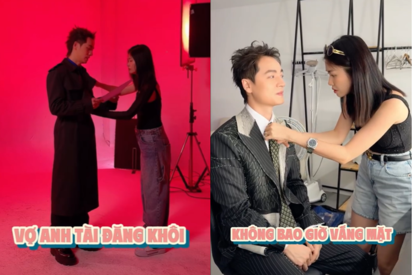Bên cạnh đó, cặp đôi đình đám một thời Đăng Khôi - Thủy Anh cũng khiến không gian như được "ướp đường". Cựu hotgirl luôn sát cánh bên nam ca sĩ, chăm sóc chồng từng chút một ngay khi cả trên set chụp.