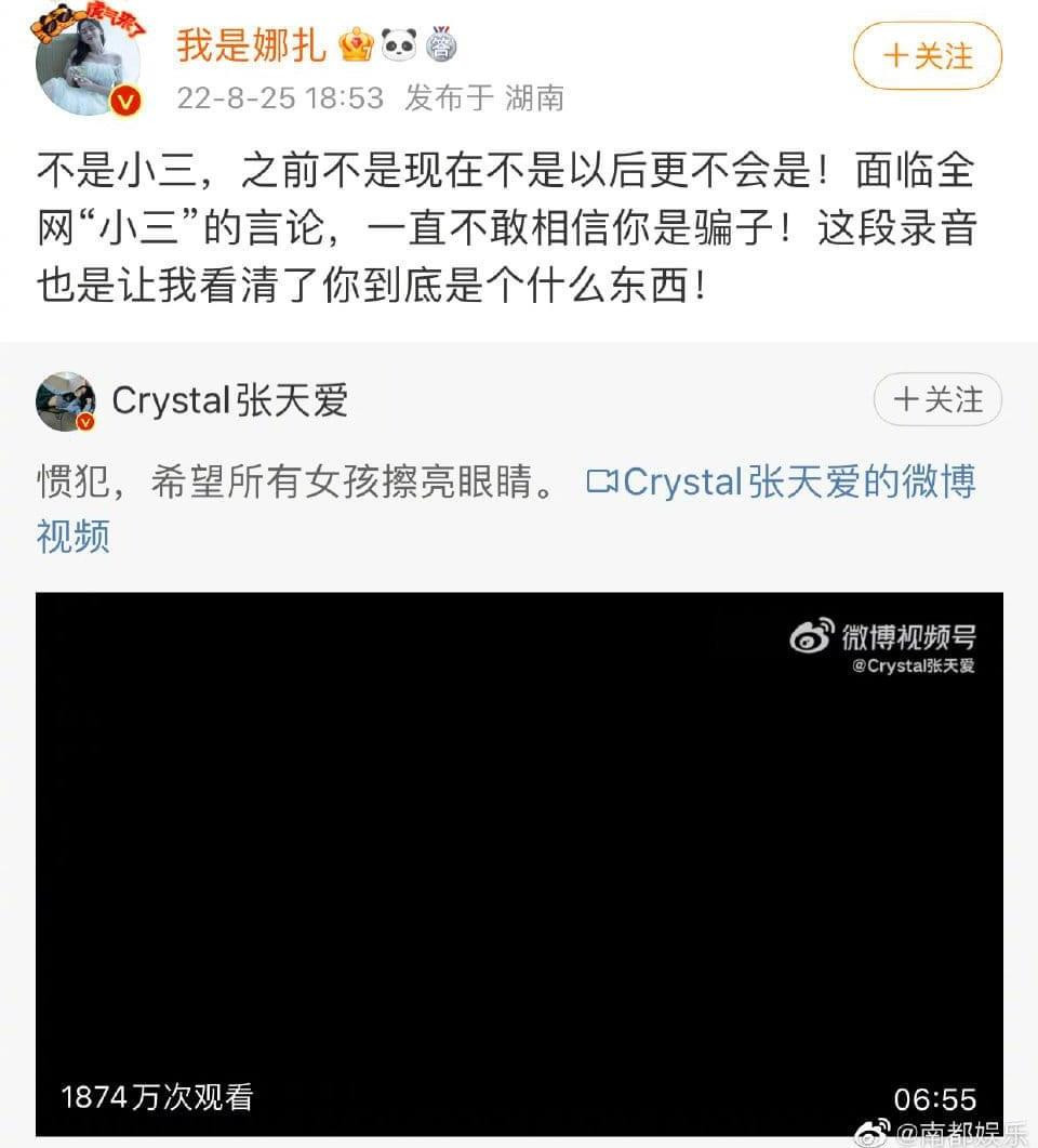 Cổ Lực Na Trát sau đó đã chia sẻ lại bài đăng của Trương Thiên Ái và khẳng định bản thân bị oan: "Tôi không phải tiểu tam, trước kia không phải, hiện tại và sau này cũng không. Bị mọi người chỉ trích là tiểu tam, tôi vẫn không thể tin anh là kẻ lừa đảo. Đoạn ghi âm này giúp tôi hiểu rõ con người thật của anh rồi".