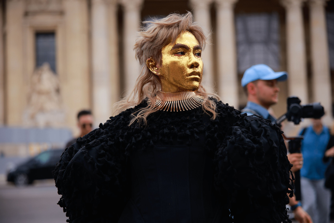 Với gu thẩm mỹ và bản sắc thời trang riêng biệt, tạo hình của nam 'beauty blogger' không khiến người hâm mộ thất vọng trong ngày đầu chinh chiến thị trường thời trang quốc tế. Anh trở thành “gương mặt vàng” trong ngày đầu diễn ra 'Tuần lễ Thời trang Paris' khi khuôn mặt được bao phủ bởi những lá vàng một cách công phu, tỉ mỉ. Kiểu tóc mullet không chỉ tạo điểm nhấn cho tổng thể tạo hình mà còn làm nổi bật lên nét đẹp châu Á và ý niệm sở thích về nhân vật anime của nam 'beauty blogger'.