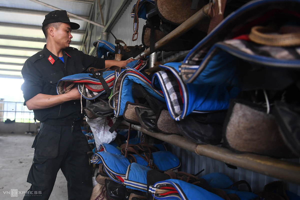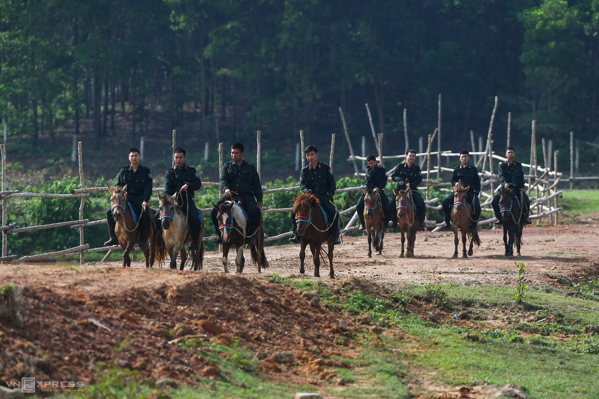 71 cảnh sát nghĩa vụ công tác tại Trường đào tạo, huấn luyện ngựa được tuyển chọn có sức khỏe, hiểu biết và yêu thích động vật. Hàng ngày, các chiến sĩ cho ngựa ăn từ 5h30 sáng rồi chuẩn bị đồ nghề yên ngựa, dây cương và công cụ hỗ trợ bắt đầu một buổi huấn luyện.