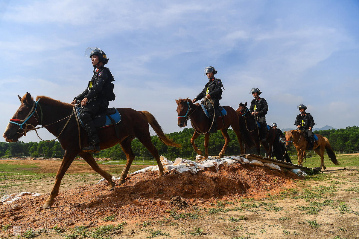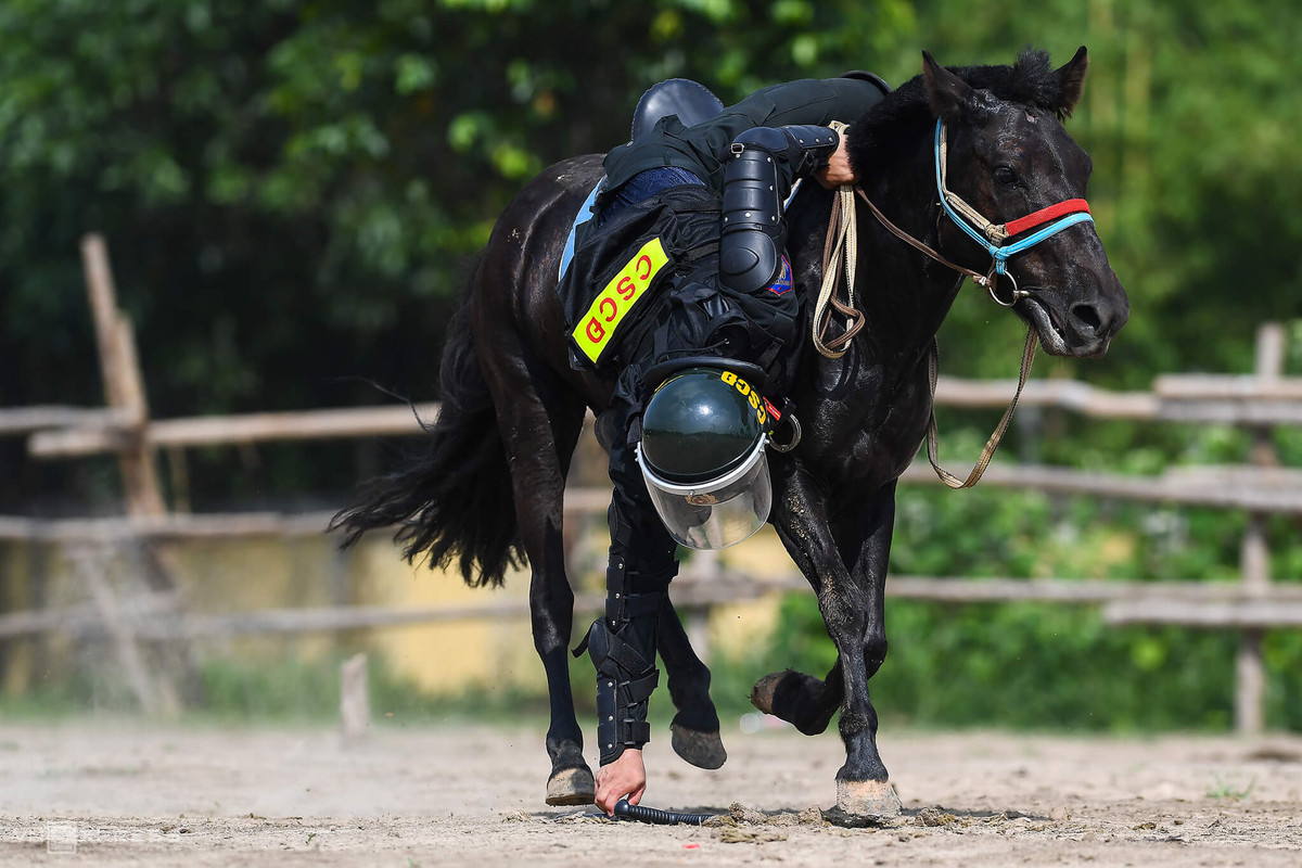 Bài huấn luyện ngựa đi đều hàng 4 trên. Để làm thành thục các động tác này, cảnh sát mất nhiều tháng huấn luyện.