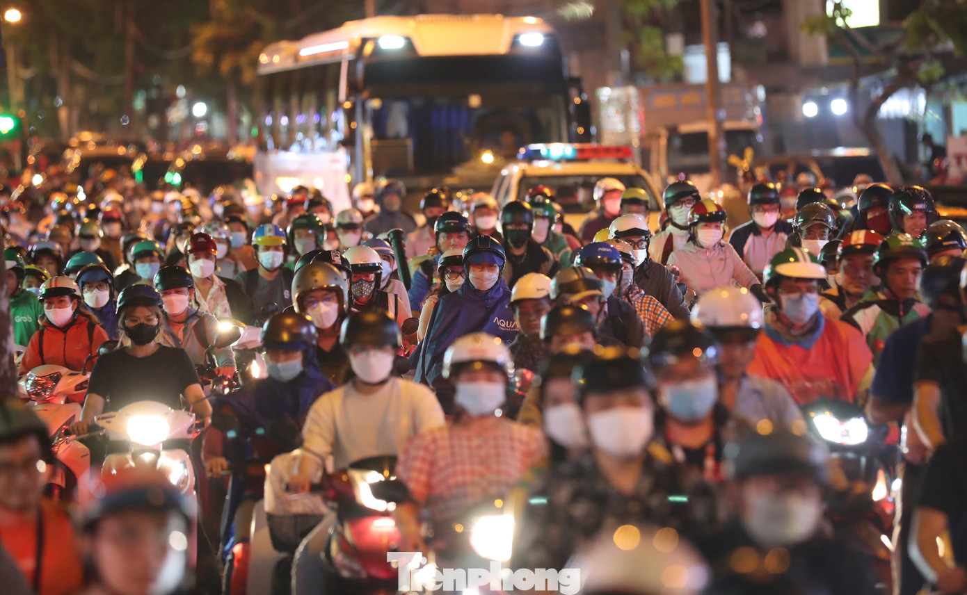 Nhiều người tay xách nách mang đồ đạc, ủ rũ, mệt mỏi vì phải di chuyển đến bến vào giờ cao điểm trong tình trạng các tuyến đường lân cận bến xe miền Đông như Ngã tư Hàng Xanh, Đinh Bộ Lĩnh, Nguyễn Xí... bị ùn ứ cục bộ.