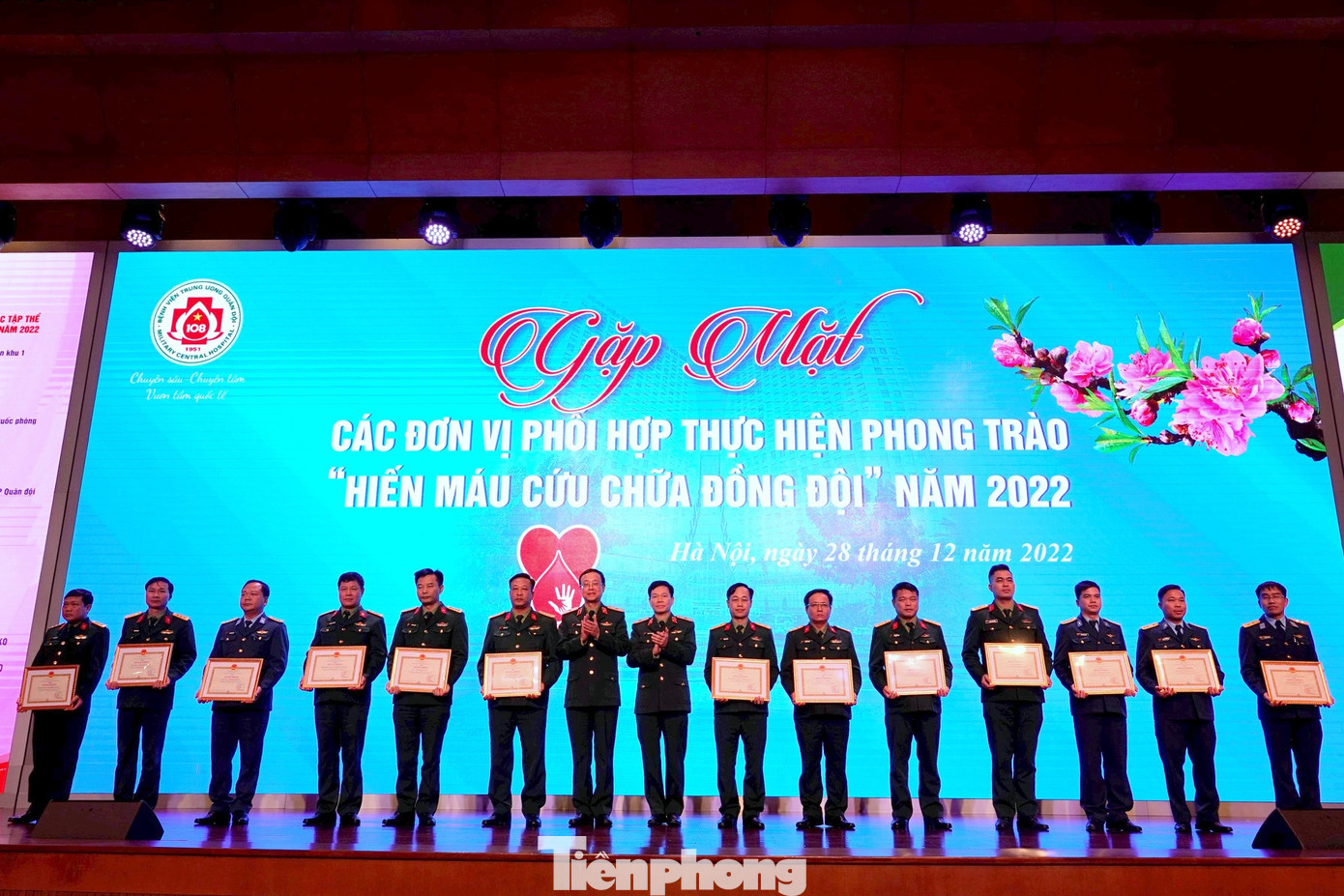 Chiều 28/12, tại Hà Nội, Bệnh viện Trung ương Quân đội 108 tổ chức gặp mặt các cơ quan, đơn vị phối hợp thực hiện phong trào “Hiến máu cứu chữa đồng đội năm 2022” và trao thưởng cho các tập thể, cá nhân tiêu biểu trong phong trào. Tham dự chương trình có lãnh đạo, đại biểu nhiều cơ quan, đơn vị trong và ngoài Quân đội cùng đông đảo cán bộ, ĐVTN.